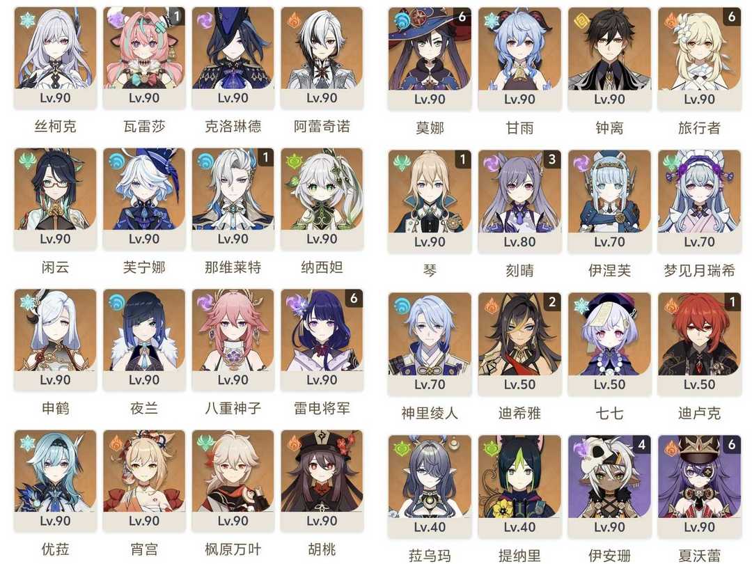 速玩⚡️30个五星角色❤️6命莫娜✨6命雷电✨丝柯克✨瓦雷莎✨克洛琳德✨阿蕾奇诺✨闲云✨芙宁娜✨万叶