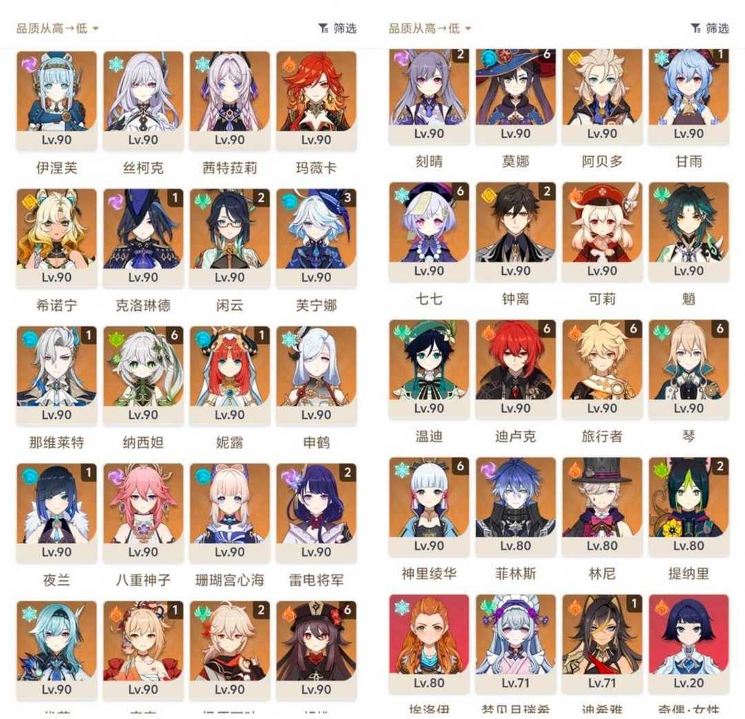 速玩⚡️41五星角色【全皮肤】❤️6满命胡桃6纳西妲6神里绫华✨3芙宁娜2钟离2闲云2万叶