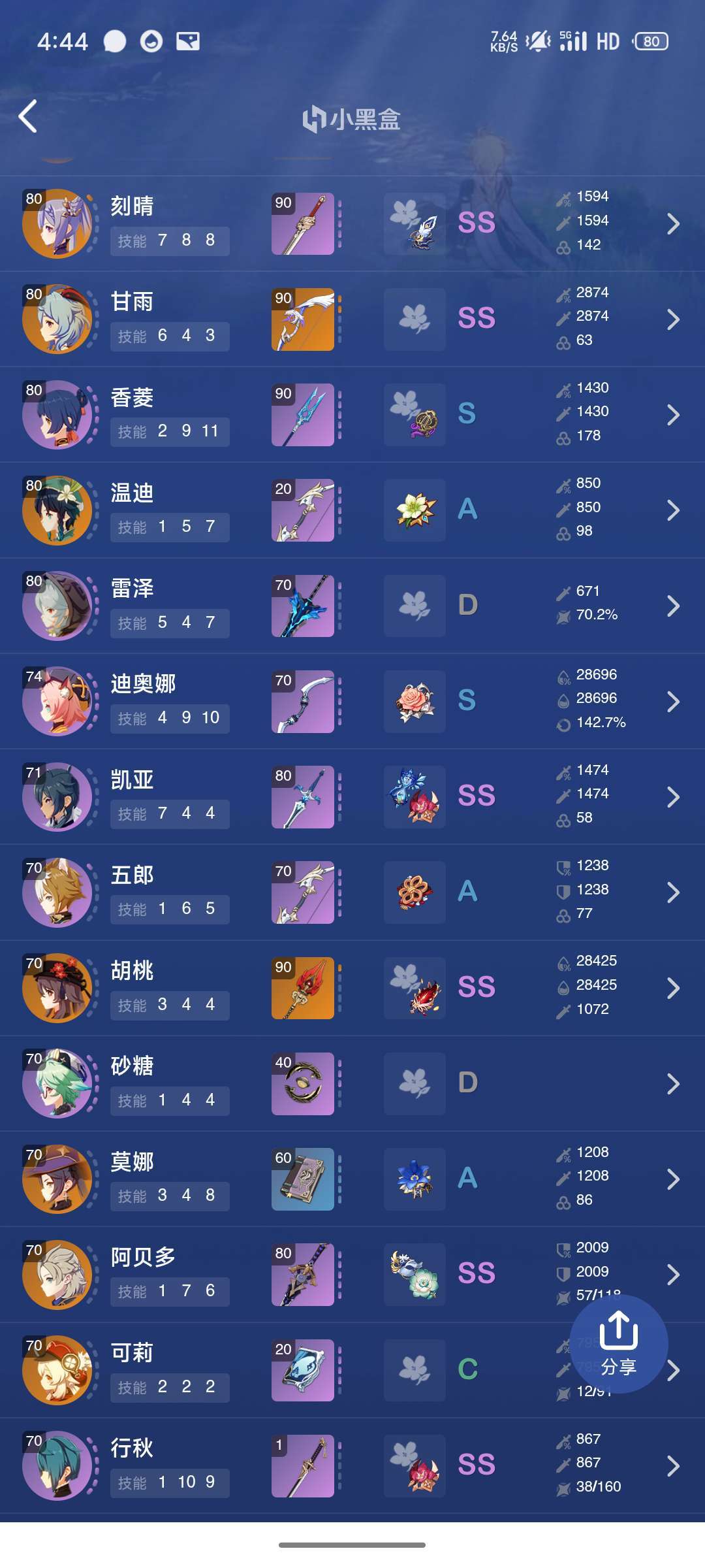风神,岩神,火神,雷神,草神,部分五星角色和武器