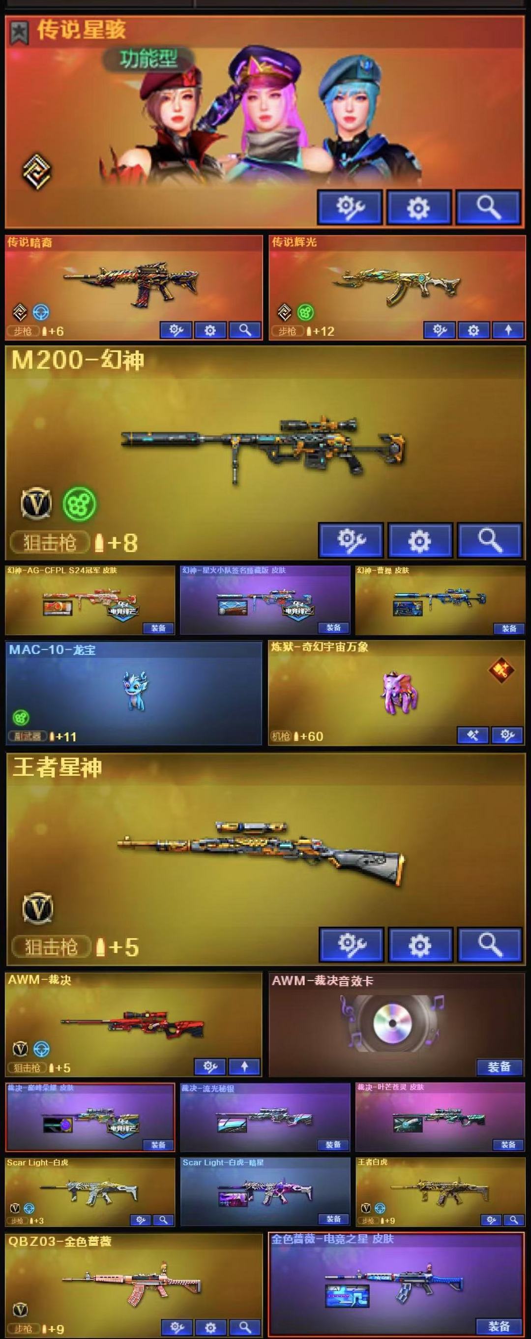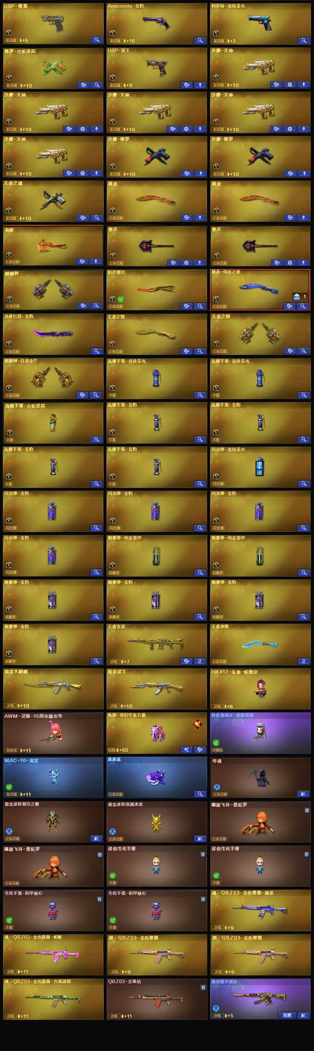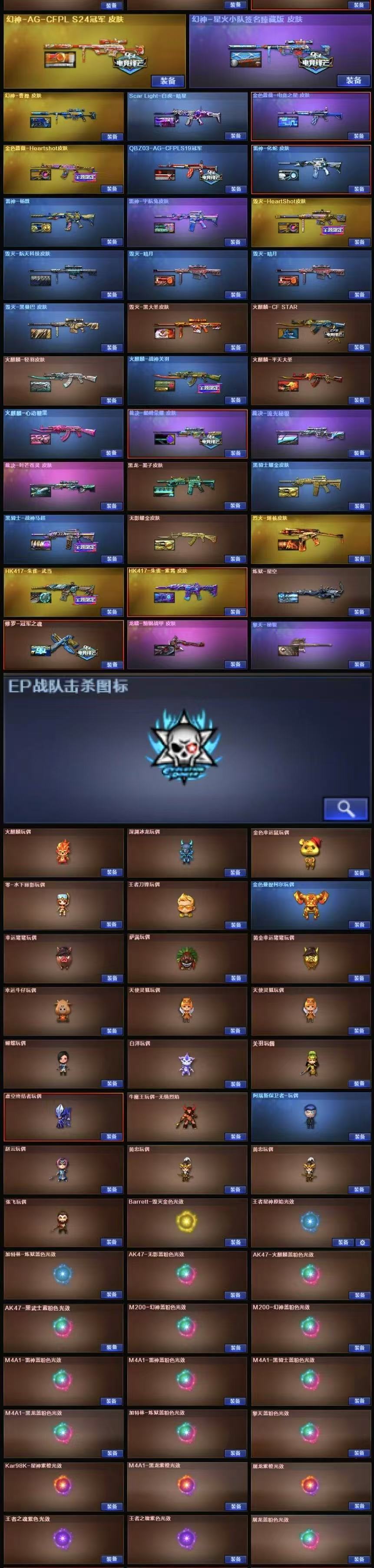 粉色泡泡象奇幻宇宙万象+龙宝+跳跳鲨+王者玄武+炽芒蝶刃+妮妮+4防生化角色荆棘+4防传说星骇+传说暗裔+传说辉光+3皮幻神AGS24冠军星火小队臻藏版曹操+王者星神+巅峰荣耀叶芒苍灵流光秘银裁决音效卡+暗星白虎+王者白虎+玄豹+法玛斯天戎+G36C幻影+电竞之星AG冠军Hearshot金色蔷薇音效卡+天罚音效卡+雷暴USP+冥王USP+玄豹手枪+竞技柯尔特+玄豹匕首+6烈龙异变清道夫蛇影双骄死亡之眼+6盘龙2炼狱百战金芒+机械姬+满套蛇隐宗【123v】