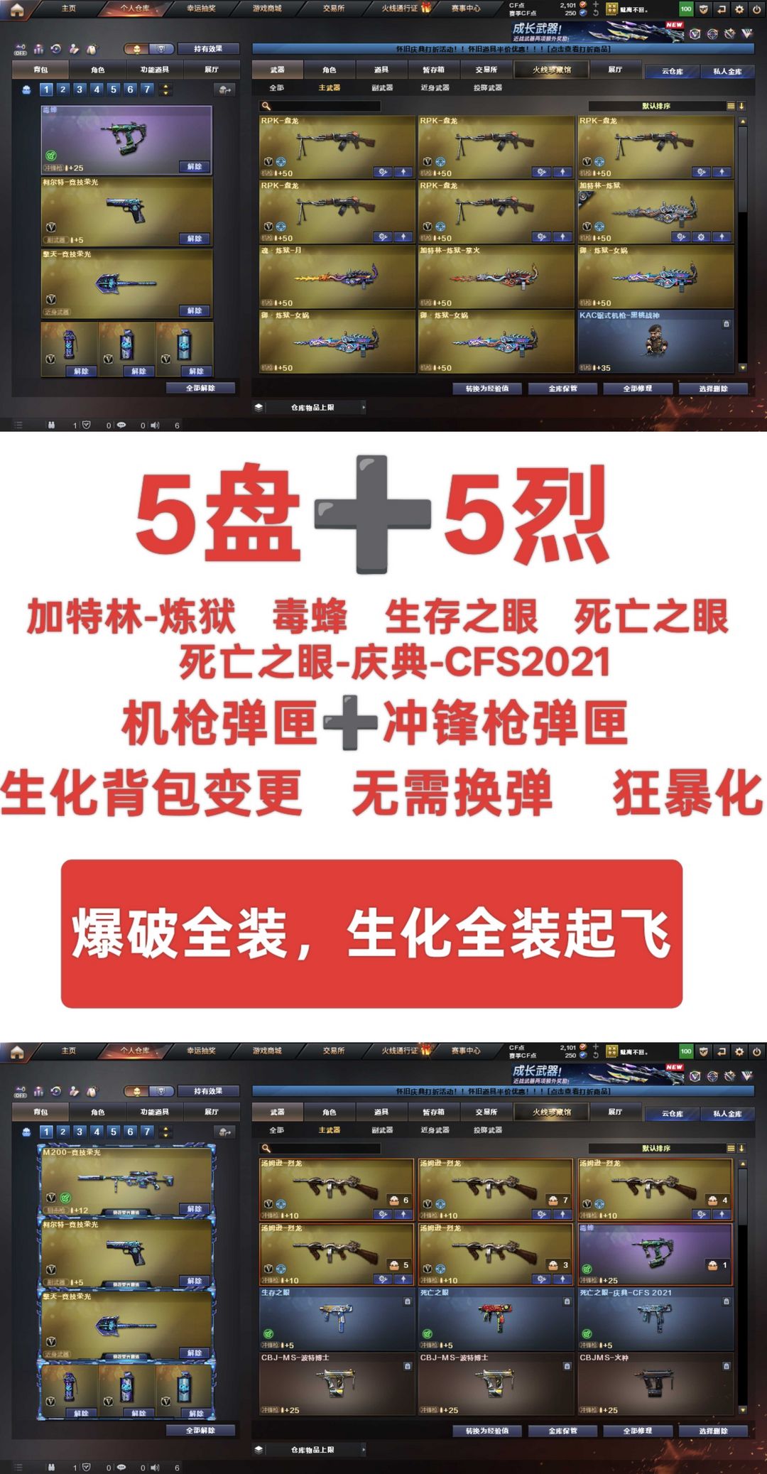 M200-竞技荣光⚡星神➕COP-堕天神⚡QBZ⚡生化不换弹➕背包变更⚡五盘五烈⚡毒蜂➕死亡之眼
