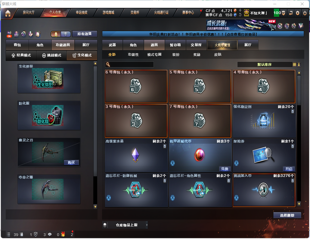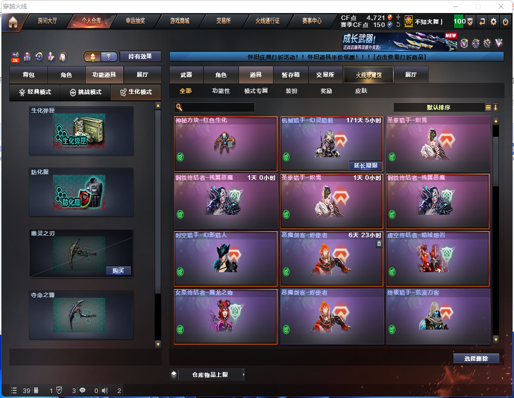 时空猎手✨16个生化皮肤✨斯泰尔蝴蝶毒蜂✨生化6盘6烈✨炼狱幻神可排位✨满榴弹减速雷全鬼✨无炽芒蝶刃