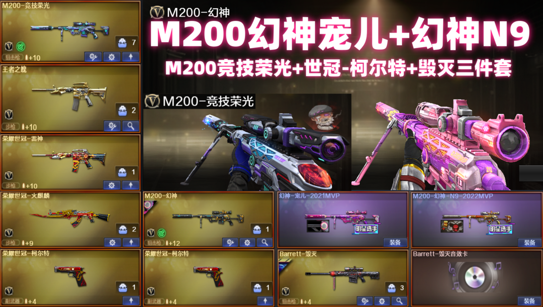 M200幻神⚡幻神N9⚡幻神宠儿✅M200竞技荣光✅雷神荣耀之魄✅柯尔特-荣耀世冠套毁灭✅生化6烈龙