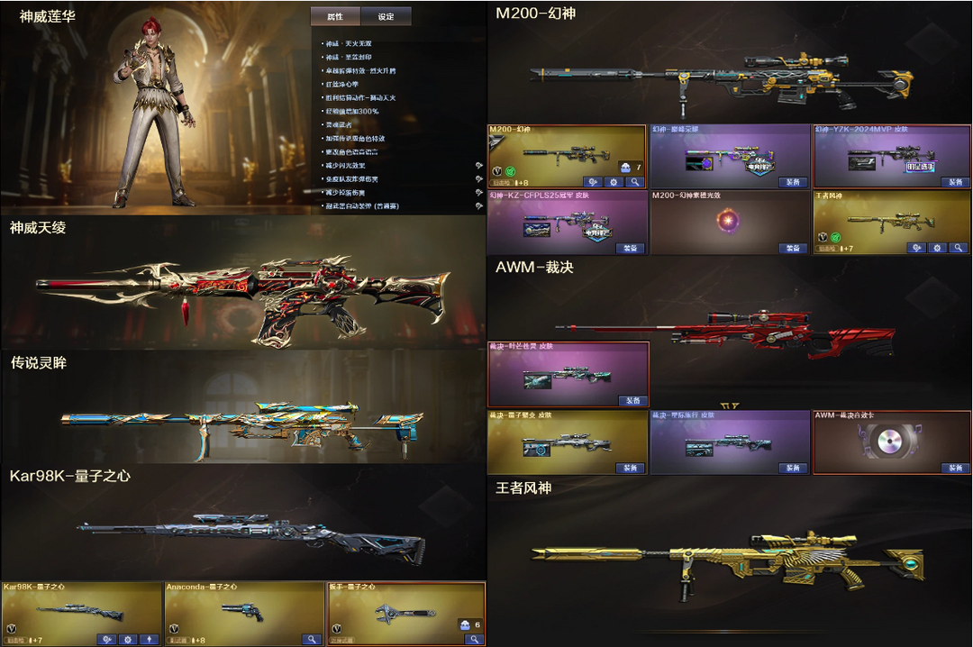 传说灵眸4防神威莲华天绫♉幻神4皮YZK+量子套+裁决白虎三件套♉幻影天袭QBZ蔷薇EP+7满副炽芒