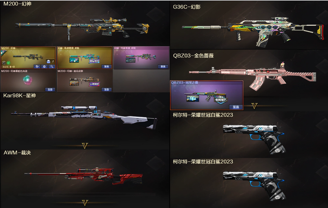 爆破装❤幻神欧欧电流黄忠光效+星神裁决❤QBZ蔷薇冠军之薇+G36C幻影❤2白鲨柯尔特+3防隼