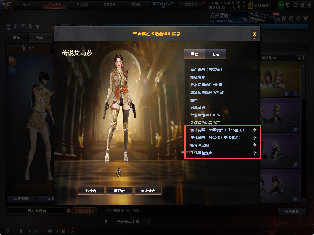 生化炽芒蝶刃✨清道夫斯泰尔蝴蝶✨四防传说艾莉沙✨6盘6烈✨炼狱小钢✨时空猎手✨幻神可排位满榴弹不退包