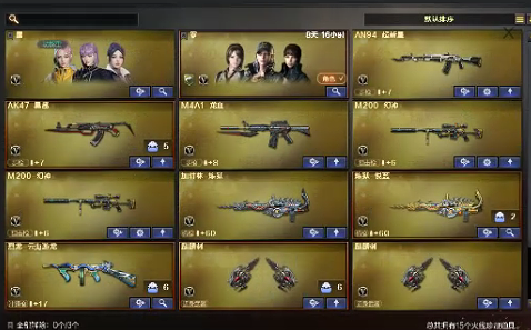 9v、1炫金【武器】 m200-幻神 炫金毁灭 6修罗 黑鲨 龙啸-烈火龙威 【角色】 灵狐者-职业经理(四防) 新娜塔莎 永久防弹衣 头盔 c4工具钳 手蕾包 五背包