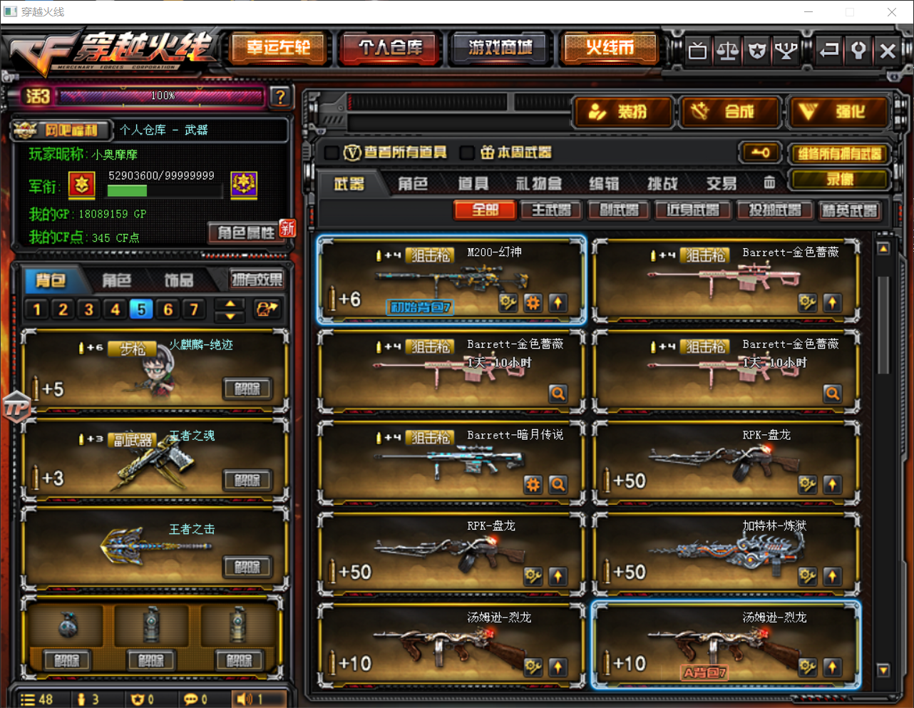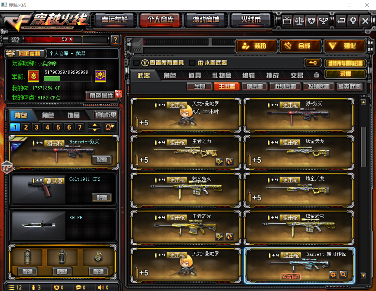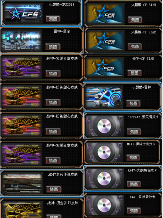 98K星神HK417朱雀M4A1青龙M200幻神 绝技小人 冠军之势 冠军白鲨雷神 361黑龙 CFS2018全套 AG全套 荣耀全套皮肤 CFSTAR全套皮肤 炽天使 魅影 全音效卡 35皮肤 可排位 七列六盘两炼狱五黑骑士 生化模式建议用灵狐者黄金海岸 祝各位老板玩的开心 新上胡司令角色 M4A1青龙 网剧冠军套装 夜魔套装X1 祝各位老板玩的开心 !!98K星神,M4A1雷神-宠儿-2019MVP