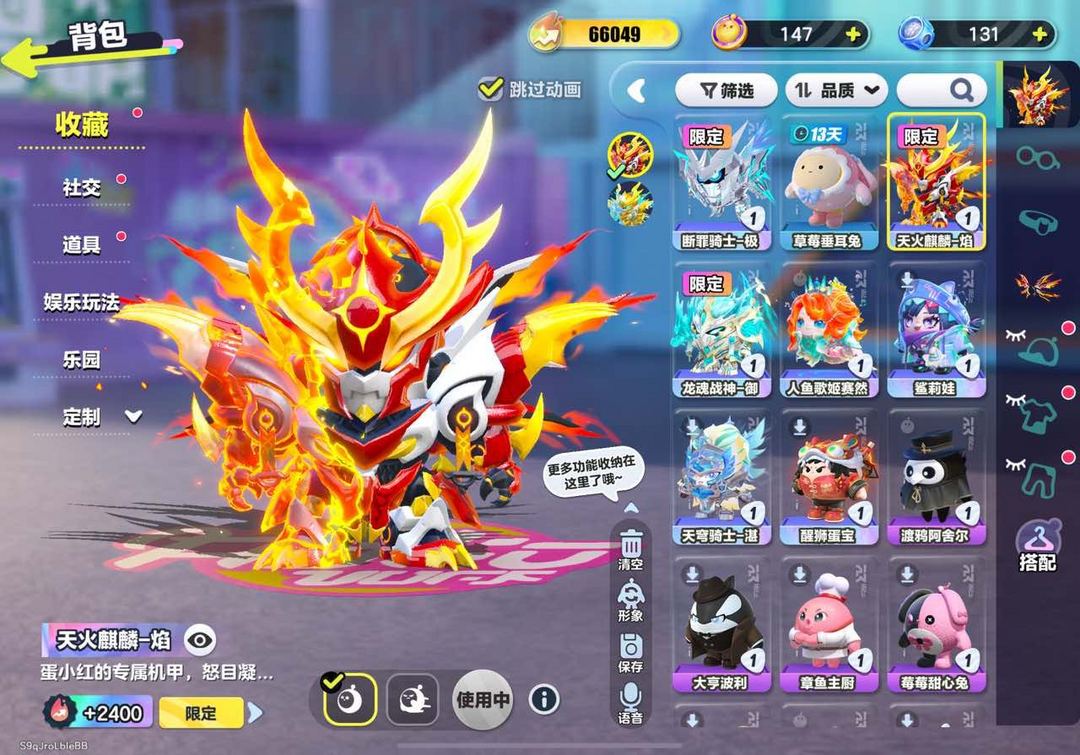 双区✅4机甲3大机甲✅天火麒麟焰✅龙魂战神御✅断罪骑士极✅双载具✅仙舞飘飘鹿✅3小羊