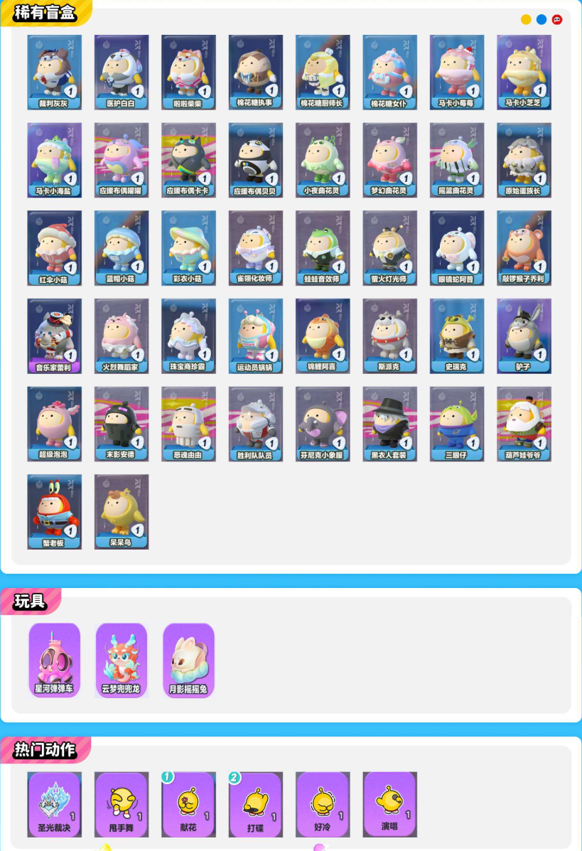 安卓官服 14W潮流值 17至臻角色盲盒 80典藏盲盒角色 小国王蕾利(新赛季隐藏) 云梦兜兜龙 月影摇摇兔(兔兔车) 星河弹弹车 炫光舞台 山水谣 月白之隐 碎晶幻翼 裁决圣环 至臻角色:醒狮蛋宝 天穹骑士-钻(限定) 圣翼天使-澄(限定) 独角兽芬妮亚 音爆曜星(隐藏) 剧院院长魅影 流火精灵舞舞 捕梦软软 主唱曜星 玉龙扶风 玉龙云岫 蛋糕龙嗝嗝 稀有盲盒角色:小国王蕾利(隐藏) 歌院首席露希(隐藏) 灵灯闪闪(隐藏) 小羊 红小豆 奥特曼 等各种