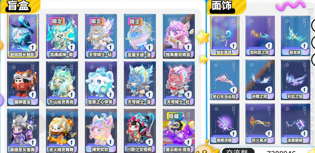 安卓官服 21W潮流值 30至臻角色盲盒 130典藏盲盒角色 龙魂战神-御(限定染色 带全套表情动作配饰) 天穹骑士-钻(限定染色 带全套表情动作配饰) 圣翼天使-澄(限定染色 带全套表情动作配饰) (云梦兜兜龙) (青鸾仙羽) (月白之隐)(碎晶幻翼)(大骑士染色) (大天使染色) (裁决圣环) (冰晶耀盾) 至臻角色:龙魂战神-御(限定染色) 天穹骑士-钻(限定染色) 圣翼天使-澄(限定染色) 千山绘灵青岚 醒狮蛋宝 彼岸红皇后 星云船长洛洛玉龙扶风 玉龙云岫 天穹骑士-虹 天穹骑士-湛 圣翼天使-恋 剧院院长魅影 圣翼天使-堕 精灵莉斯尔 暴龙崽崽 雪原之心伊芙 独角兽芬妮亚 川剧少女梧桐 太空船长贝贝 苗疆圣女蚩离 流火精灵舞舞 蔷薇白皇后 捕梦软软 稀有盲盒角色:小羊 红小豆 水波蛋 蜜蜂小羊 奥特曼 萤火偷偷 灵灯闪闪 水母莱莱 宝石甲龙晶晶 歌院首席露希 北极狐卢比 飞天小猪班尼 等各种