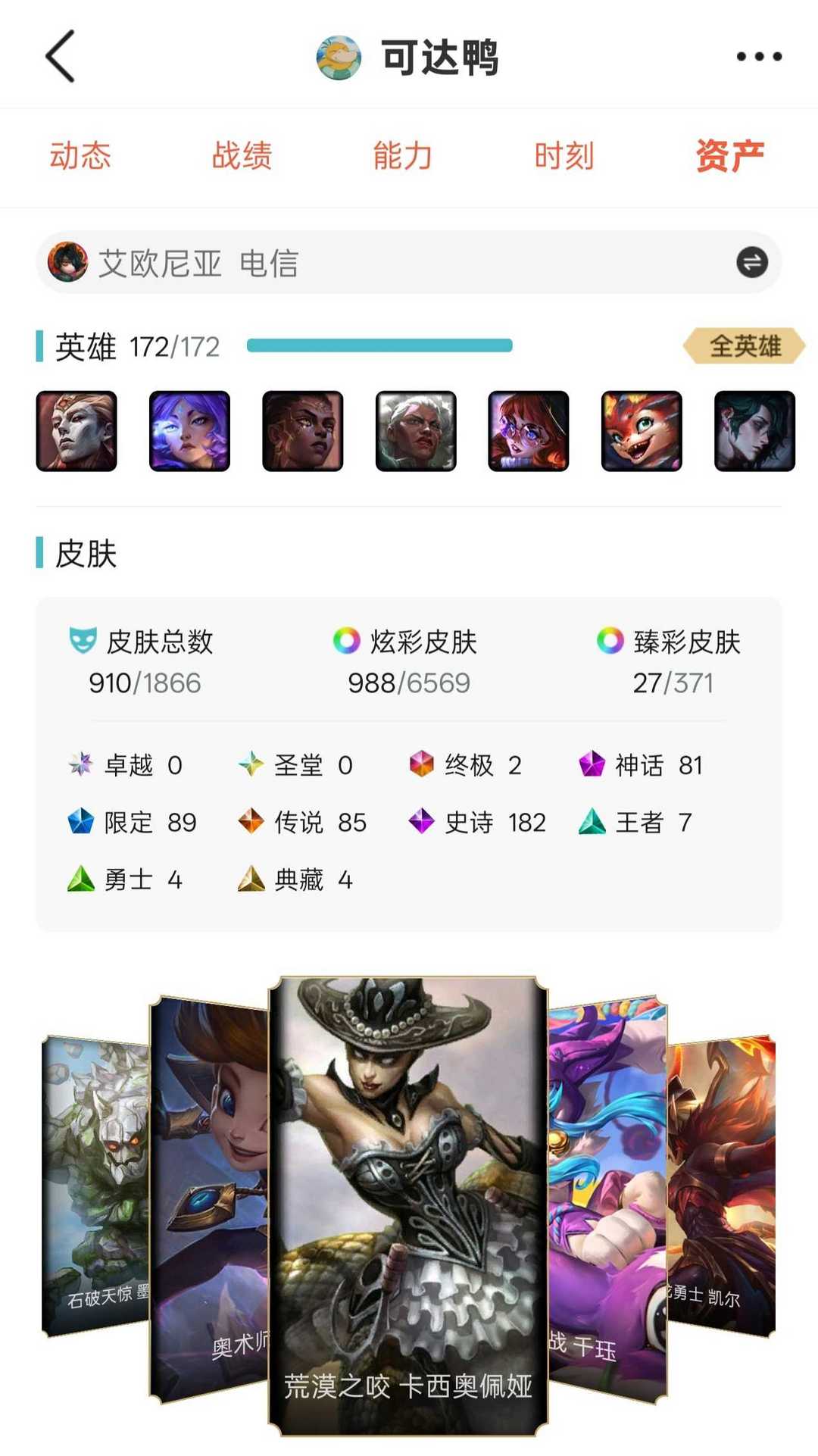 【艾欧尼亚】900原皮+980炫✨80至臻神话⚡彩虹马⚡泳池佐伊⚡鸡里奥⚡北辰之威⚡美猴王⚡永森奥恩