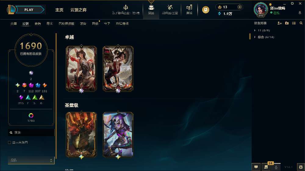 顶级账号3518皮肤:1690原皮肤加1828炫彩全至臻限定云顶方面也是顶级真正意义上的爽玩