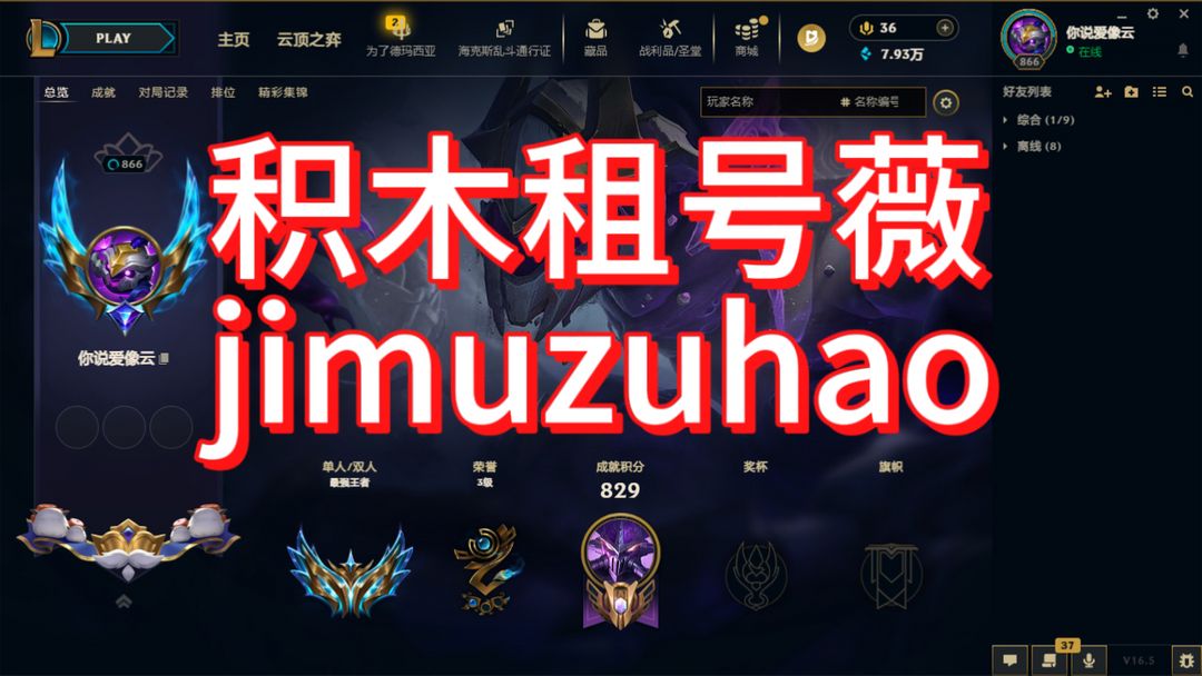 【积木租号】【艾欧尼亚】【S16最强王者】3000p★王者千分★商城全清新皮肤都买了★创世黑夜使者