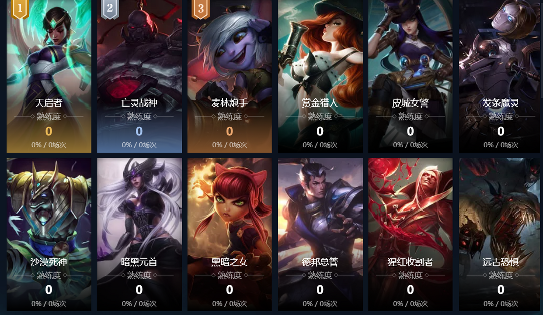 暗黑元首;赏金猎人;熔岩巨兽;迅捷斥候;披甲龙龟;德玛西亚之力;傲之追猎者;海兽祭司;黑暗之女;正义巨像;德邦总管;正义天使;无极剑圣;牛头酋长;亡灵战神;战争女神;众星之子;麦林炮手;祖安怒兽;雪原双子;寒冰射手;蛮族之王;武器大师;堕落天使;时光守护者;痛苦之拥;虚空恐惧;殇之木乃伊;祖安狂人;琴瑟仙女;刀锋舞者;风暴之怒;瓦洛兰之盾;邪恶小法师;皮城女警;蒸汽机器人;发条魔灵;复仇焰魂;盲僧;沙漠死神;兽灵行者;圣锤之毅;探险家;铁铠冥魂;曙光女神;光辉女郎;远古巫灵;潮汐海灵;奥术先驱;北地之怒;仙灵女巫;诺克萨斯之手;皎月女神;虚空之女;星籁歌姬;疾风剑豪;岩雀;青钢影;虚空女皇;戏命师;河流之王;狂厄蔷薇;圣枪游侠;影流之主;皮城执法官;暗裔剑魔;魔法猫咪;万花通灵;愁云使者;封魔剑魂;流光镜影;不破之誓;含羞蓓蕾;灵罗娃娃;炽炎雏龙;异画师