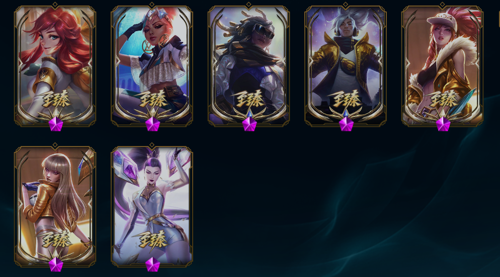 皮肤:心之钢 奎桑提;女帝 格温;咖啡甜心 格温;太空律动 “百万调音” 格温;山海绘卷 莉莉娅;心之钢 瑟提;至臻 神龙尊者 炎龙瑟提;光明哨兵 派克;腥红之月 派克;妖怪艺术家 妮蔻;山海绘卷 妮蔻;星之守护者 妮蔻;灰烬杀手 塞拉斯;至臻 神凰行者 烈羽焰凰 霞;永恒之森 霞;绝息圣堂 洛;晨星之翎 洛;永恒之森 巴德;腥红之月 卡莉丝塔;古神 艾翁;糖果之王 艾翁;永恒之森 雷克塞;上古战魂 雷克塞;虚空使者 俄洛伊;灵魂莲华 锤石;腥红之月 锤石;冠军典狱长 锤石;深渊恐惧 锤石;西部魔影 持枪女巫 莎弥拉;小蜜蜂 悠米;觅心猫猫 悠米;战斗校长 悠米;幽冥领主 阿兹尔;玉剑传说 寒潭夭夭;SKT T1 娜美;海皇姬 娜美;锦鲤 娜美;至臻 腥红之月 亚托克斯 (2022);胜利之剑 亚托克斯;至臻 腥红之月 亚托克斯;腥红之月 亚托克斯;狂鲨 亚托克斯;双城之战 蔚;碎心之拳 蔚;炼狱魔女 蔚;霓虹杀拳 蔚;至臻 真实伤害 奇亚娜;未来战士 艾克;任性学霸 艾克;时之砂 艾克;爵士 克烈;至臻 源计划:阴 劫;夺命前锋 卢锡安;源计划:魅灵 赛娜;至臻 真实伤害 赛娜;至臻
