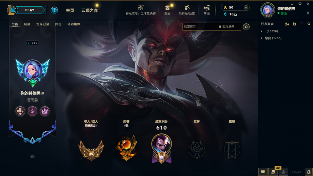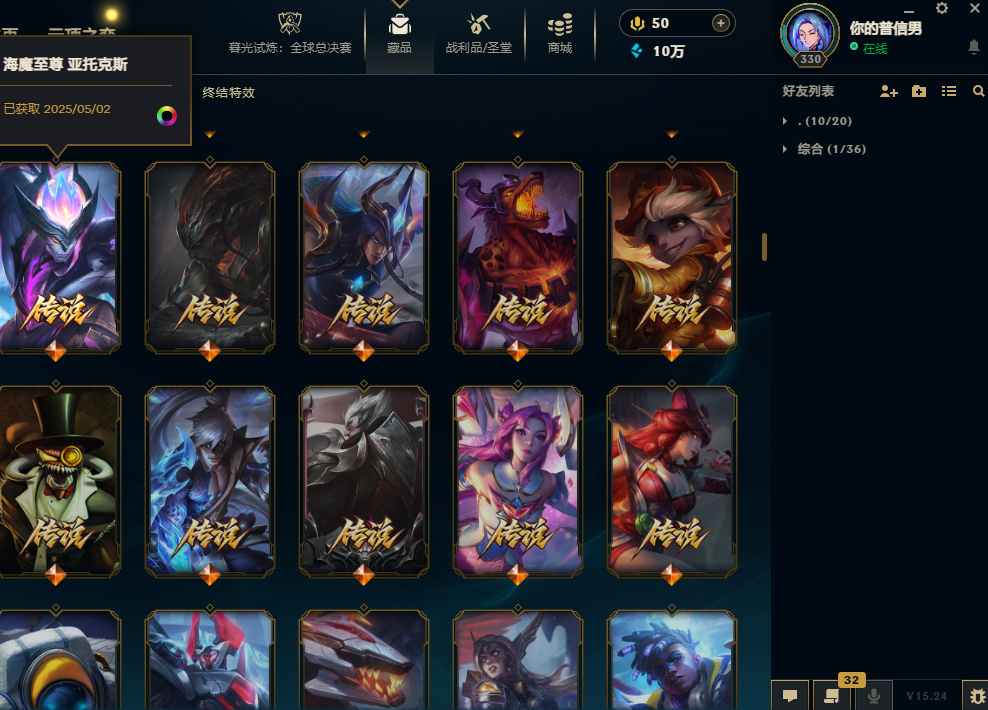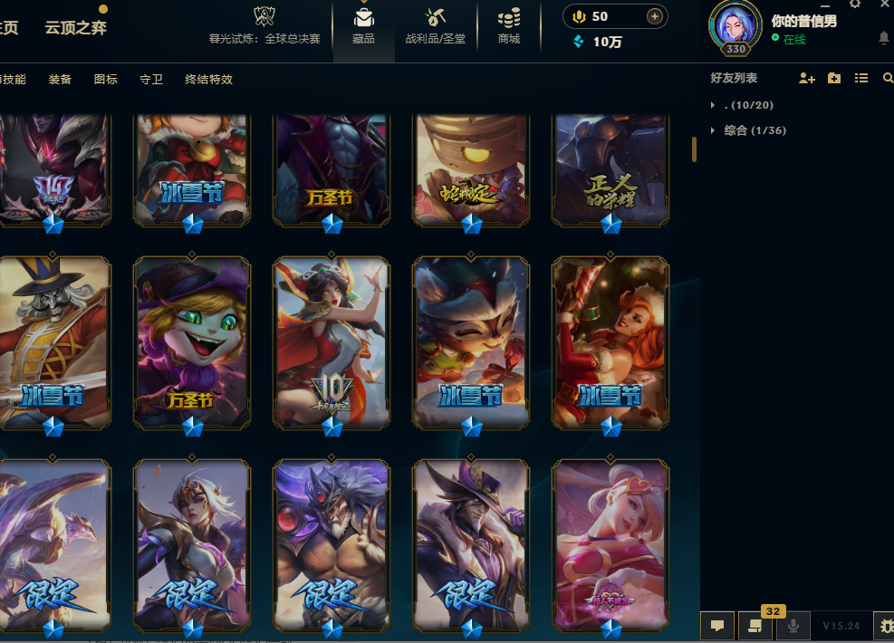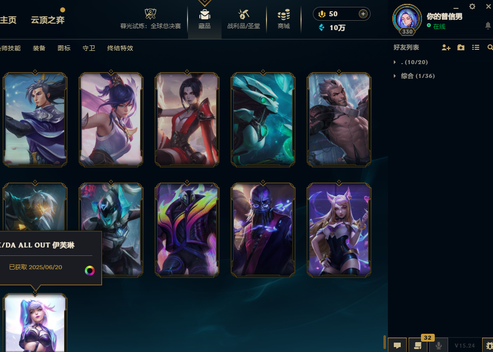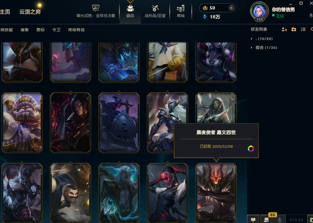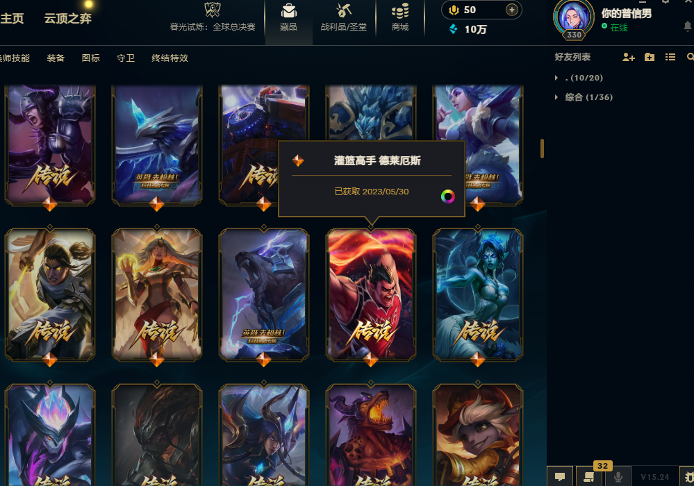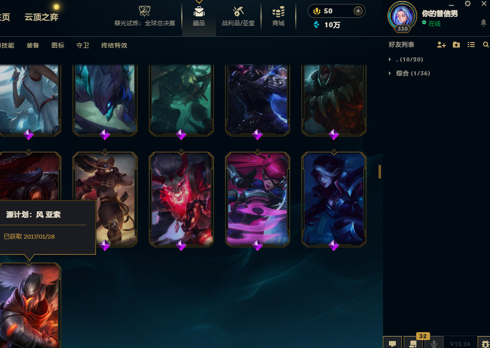 700皮肤全英雄黄金可排位【创世黑夜使者亚索】黑夜皇子DRX女警冰雪女枪波比神龙瞎神王诺手黎明永恩