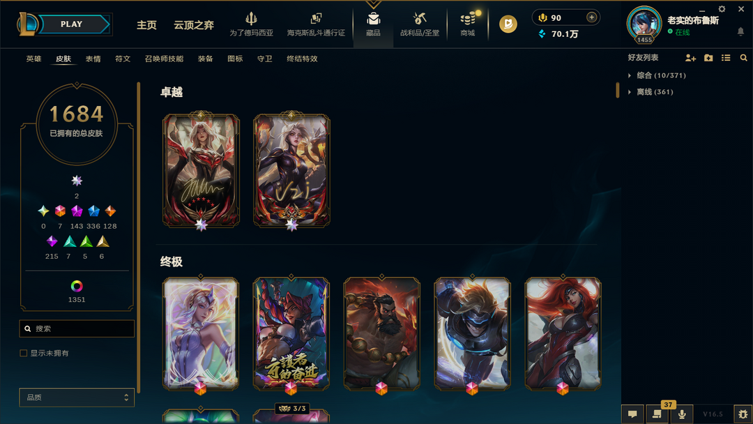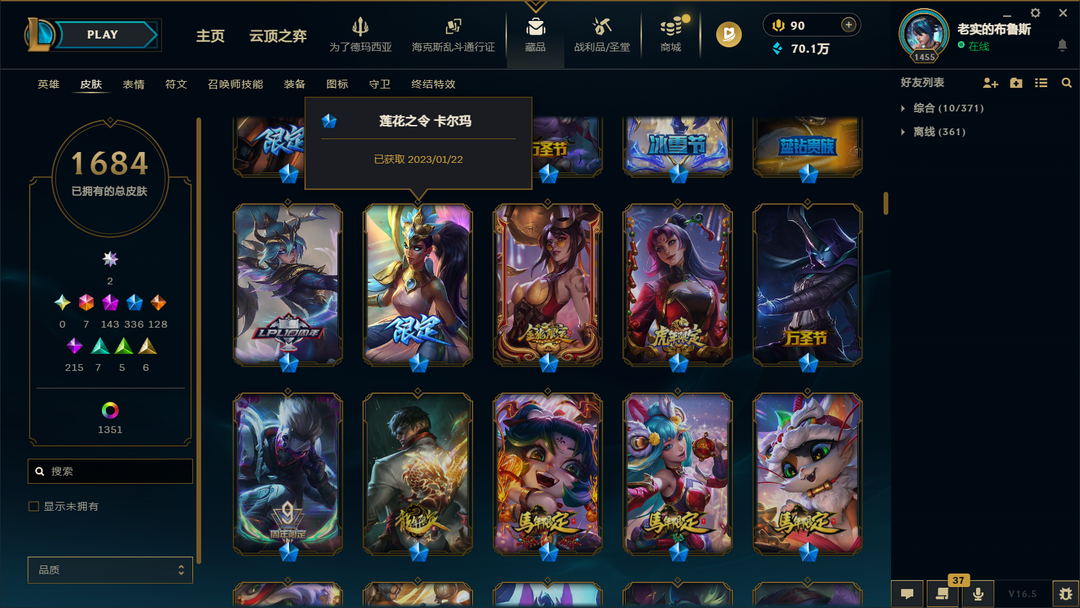 5000皮肤〓原皮肤1684〓150个至臻海克斯〓最新皮肤更新清空商场