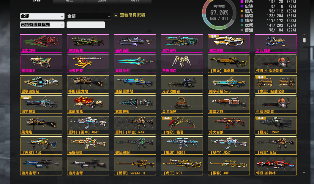 网通一区!网通一区!网通一区!网通一区!网通一区!网通一区! 具体武器看账号图片,赛季有6、8、9、10、11、12、13、14、15、16、17、18、19、20、21、22、23、24赛季,赛季武器可以上配件的都是6阶配件,其余武器大部分是5阶配件,平时不怎么上号,有什么需求可以评价或者给我发消息。