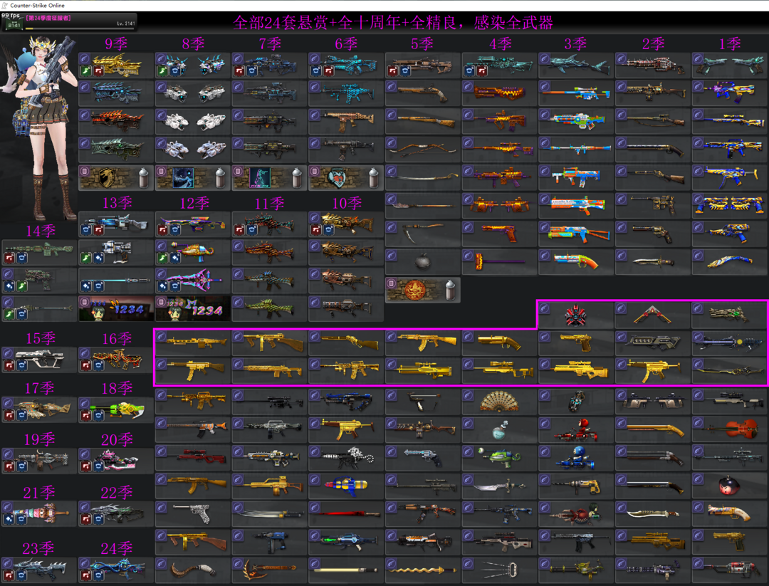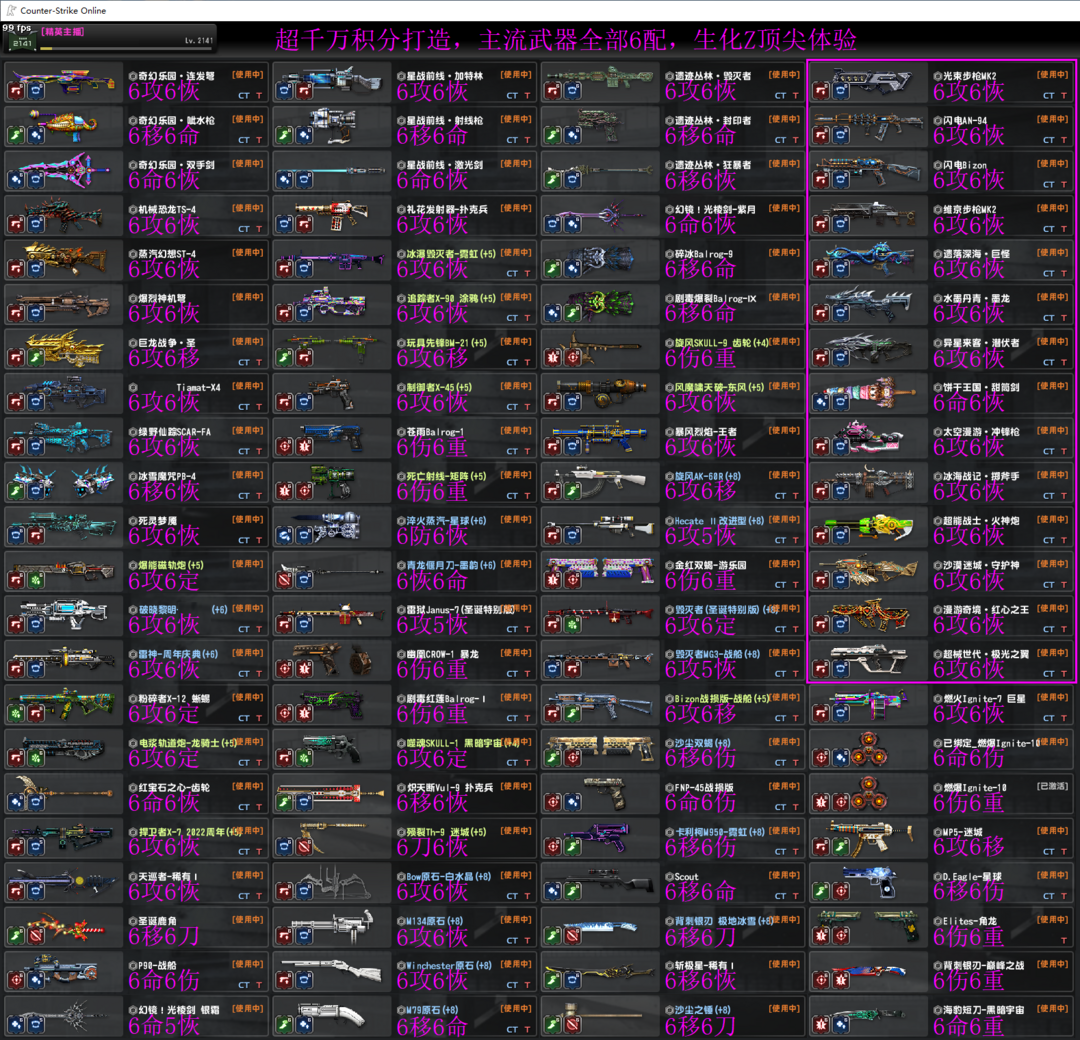 【悬赏全24套,光束/闪电94/野牛/维京2、全6级配件,十周年/沙尘/原石/改进型/圣诞,极品属性,感染全武器】———
