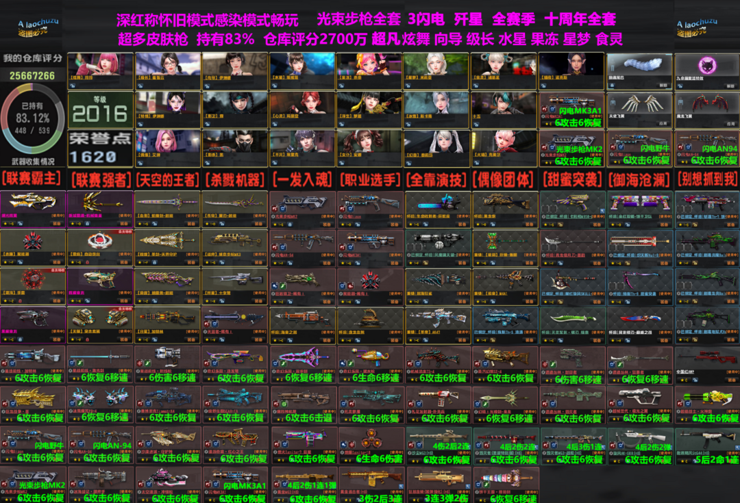 电一区深红称,2000级。怀旧模式、感染模式及生化Z前中期畅玩。光束步枪12。闪电MK3A1、闪电野牛、闪电AN-94、歼星十字弩、日冕加特林。全23个赛季。十周年枪全套。超多皮肤枪,全部极品强化。超凡人物有:人鱼、海妖、助理、炫舞、向导、级长、星梦、水星、食灵、果冻、梦瑶、安娜等。千万积分打造极品配件。 A佬出租欢迎你的光临!喜欢请收藏店铺,店铺里下单可领红包。 【已去黑雾,画面优化,画质清晰。【欢迎收藏】