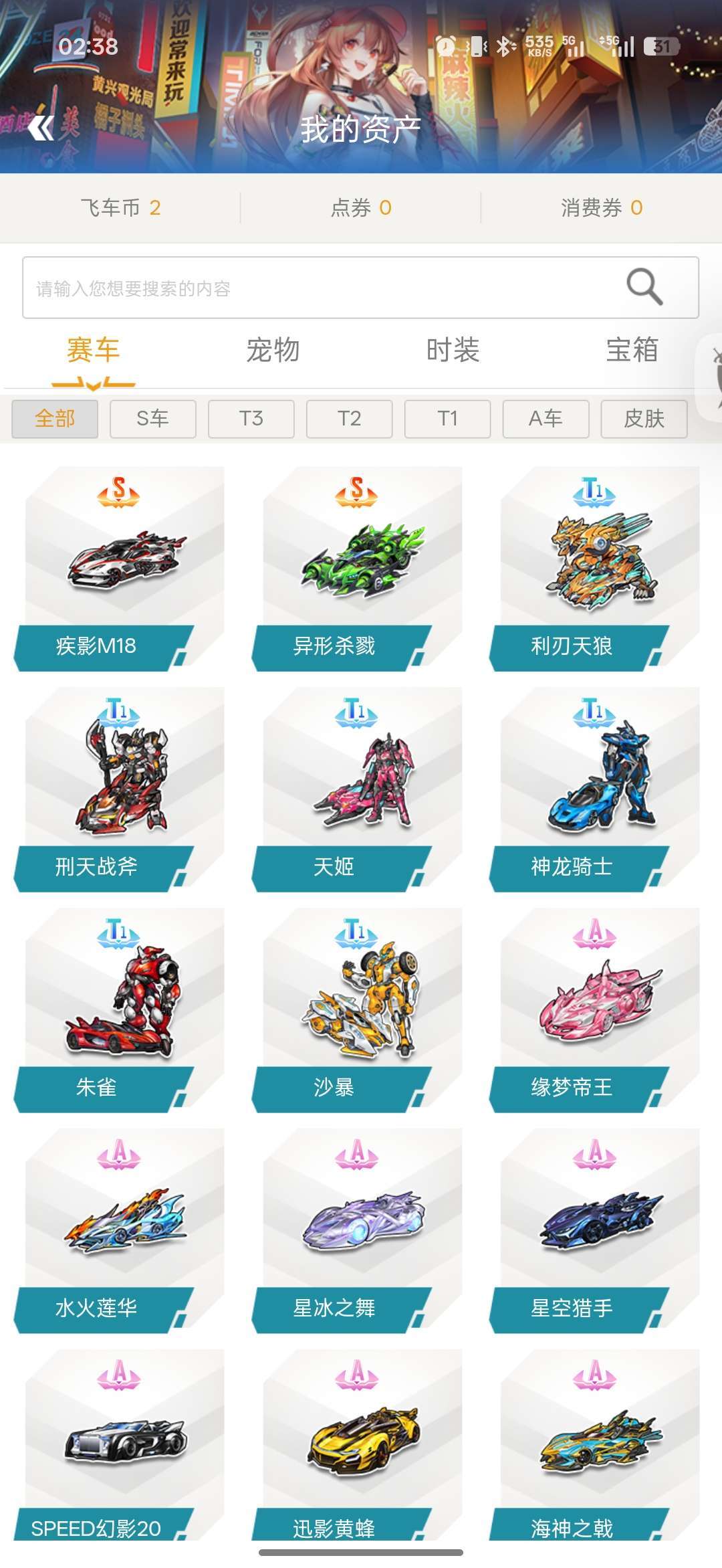 S车/T1/A车疾影M18、异形杀戮等S车,利刃天狼、刑天战斧等T1赛车,以及纪念版黄金雷诺、黑夜传说、电玩雷诺等多款热门A车;宠物包含黄金神兽、飞虎王、机器兔等绝版珍稀宠物,还有小橘子纪念版、苍穹圣鲲等特色宠物请游戏局内保持文明,防止禁言影响他人游戏,祝您玩得愉快!