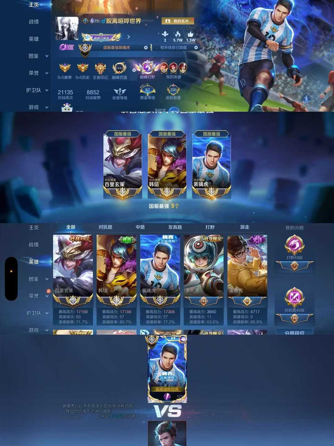 3月在榜国服老虎国服韩信国服玄策3国标巅峰2442排名百强可排禁巅峰