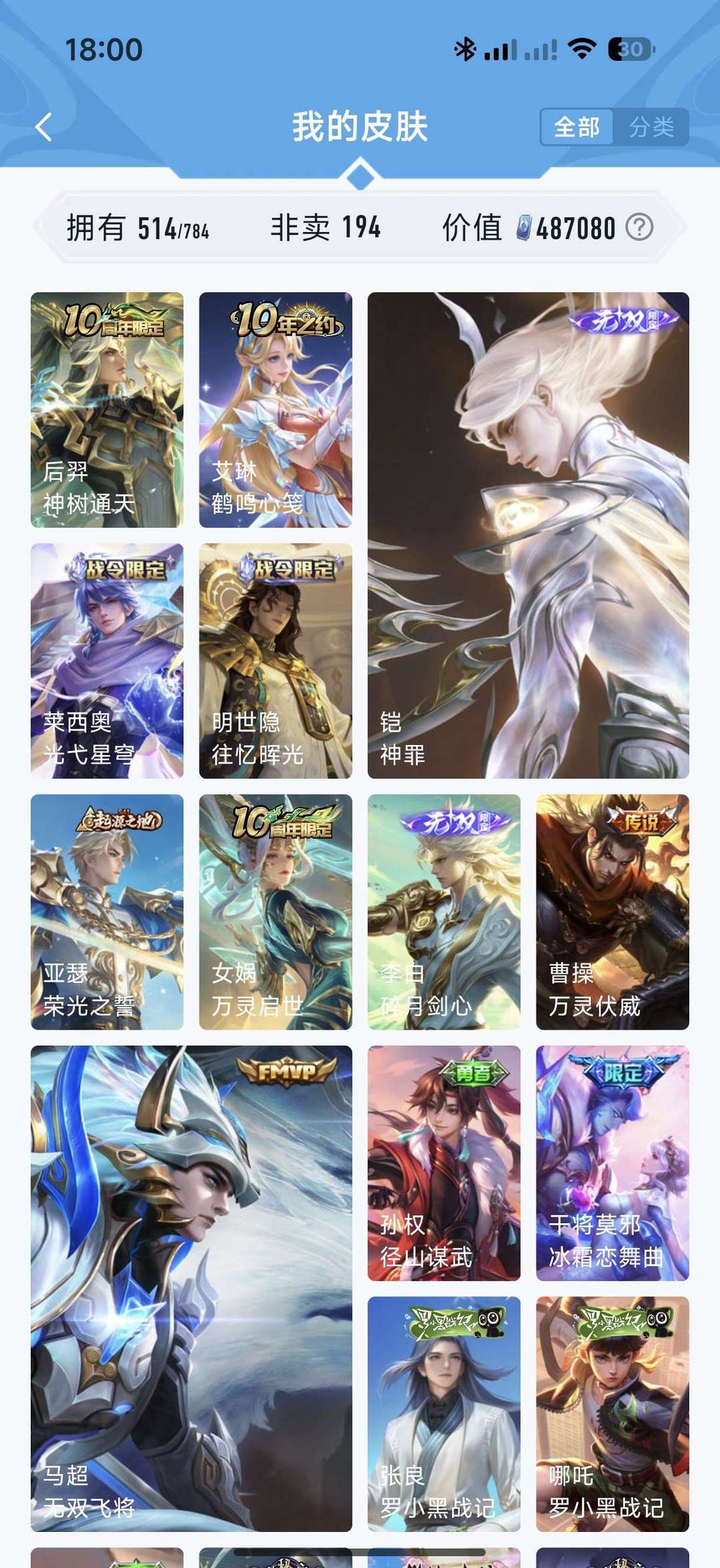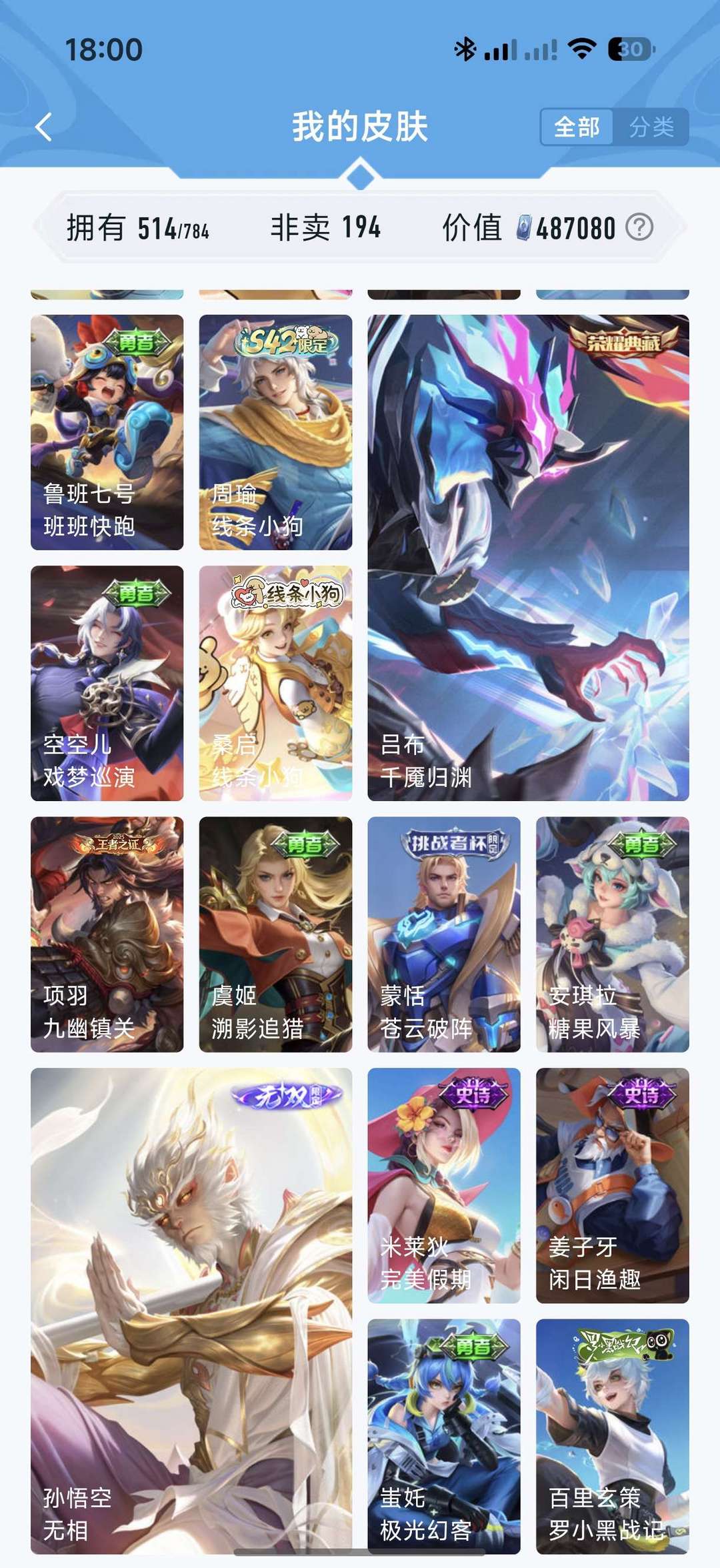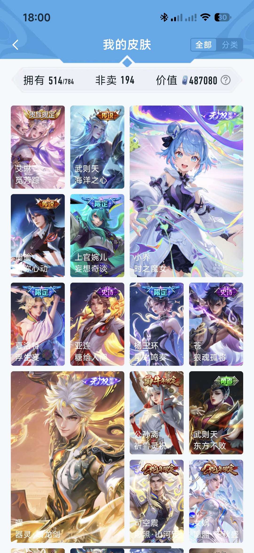 【V10 514皮】五典藏 小乔时之魔女●李信问心剑 ●孙悟空无相●凯神罪等 详看描述