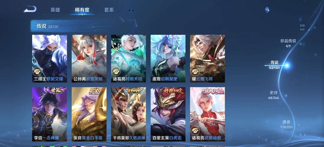 本游戏账号,英雄多,皮肤多。,尽情享受FMVP皮肤带来的主角光环 私人所属英雄皮肤有:孙尚香 末日机甲曜 云鹰飞将百里玄策 白虎志||达摩 沙漠行僧||公孙离 祈雪灵祝||关羽 冰锋战神||后羿 辉光之辰||吕布 御风骁将||马可波罗 暗影游猎||牛魔 奔雷神使||孙悟空 大圣娶亲||诸葛亮 时雨天司,等等