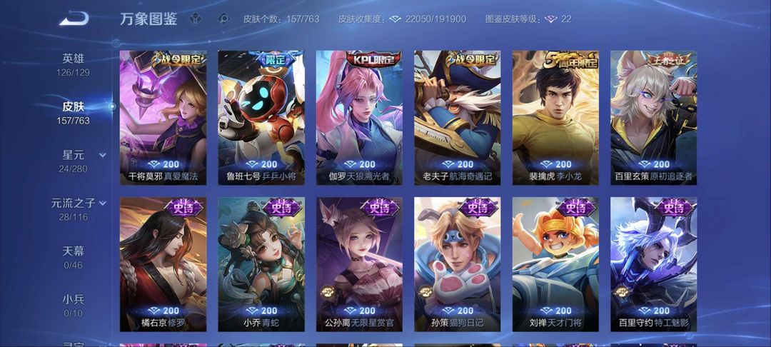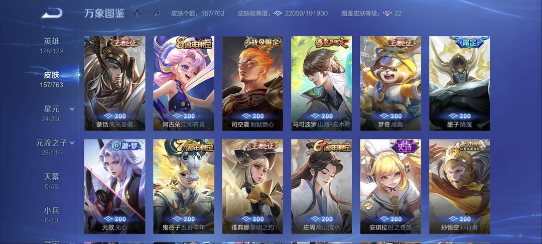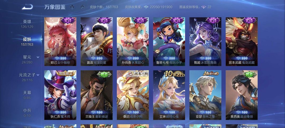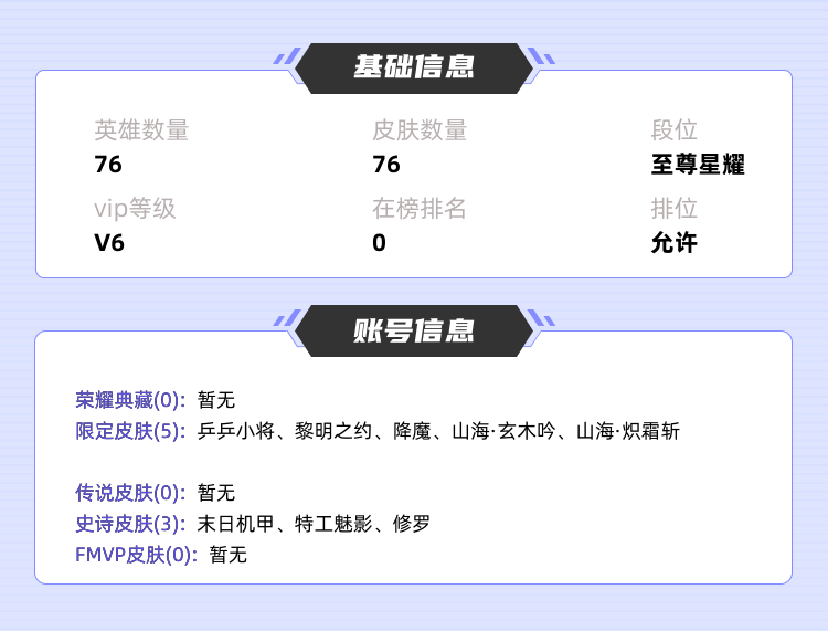 本游戏账号,英雄虽然少,应该有你喜欢的英雄,皮肤多。 私人所属英雄皮肤有:鲁班七号 乒乒小将||马可波罗 山海·玄木吟||墨子 降魔||李信 山海·炽霜斩百里守约 特工魅影||橘右京 修罗||吕布 末日机甲,等等