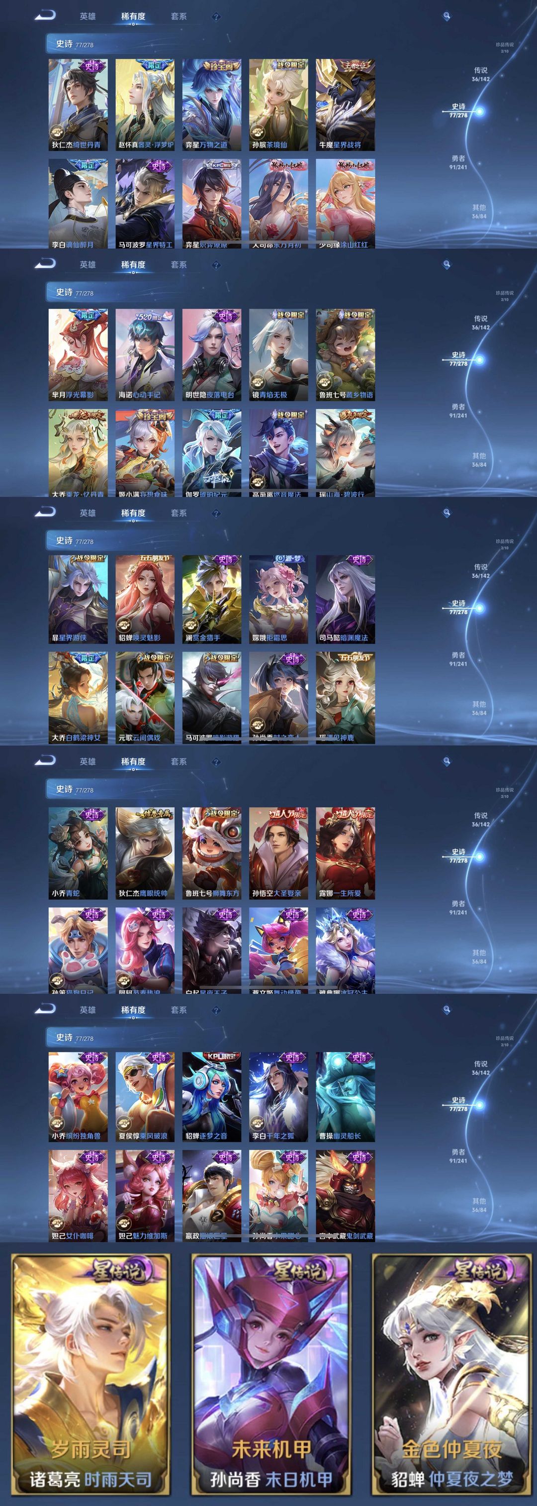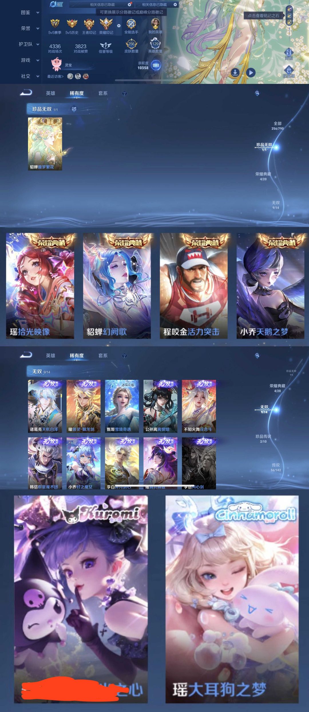 时间到了还登录白玩或者顶号全部改密拉黑处理永不解除,顶号机器会秒禁玩改密,顶号不仅拉黑还没得玩,赚三两块不容易,请理解谢谢。 ❤❤❤❤❤❤❤❤❤❤❤❤❤❤❤ 请勿开挂,挂机,送头,骂人,撤单后游戏等如有违规永久拉黑永不解除。 重置二级密码不要费劲了,号主每天都会上号查看,多行不义必自毙,人在做天在看,多做好事多自律,少做缺德事。 该号英雄129个皮肤256个,珍品无双1个,典藏4个,无双9个,珍品传说2个,星传说3个,传说36个,史诗77个,祝你游戏愉快~