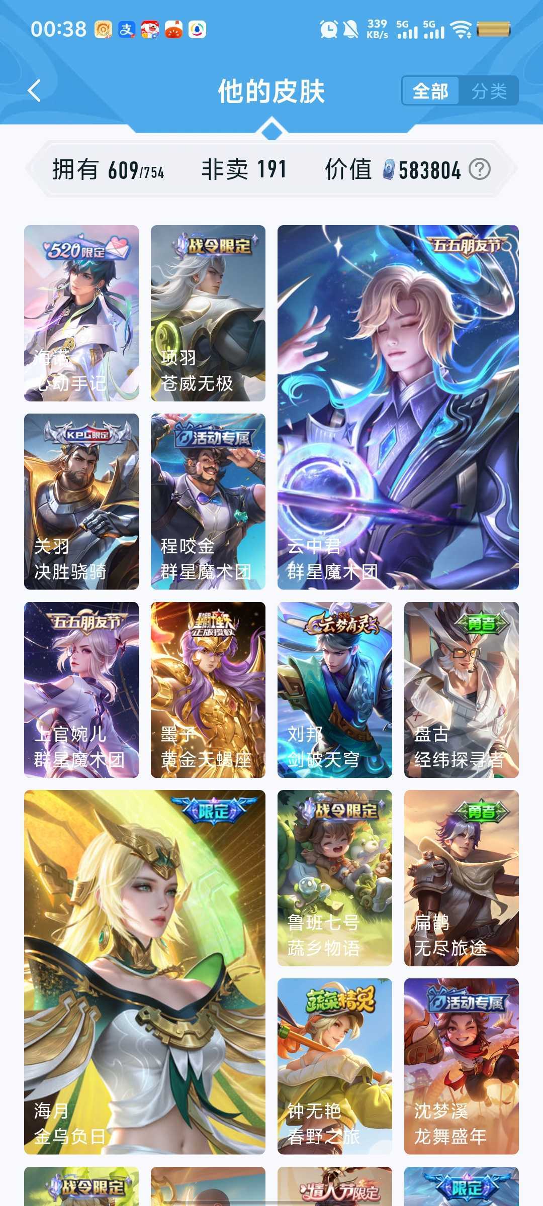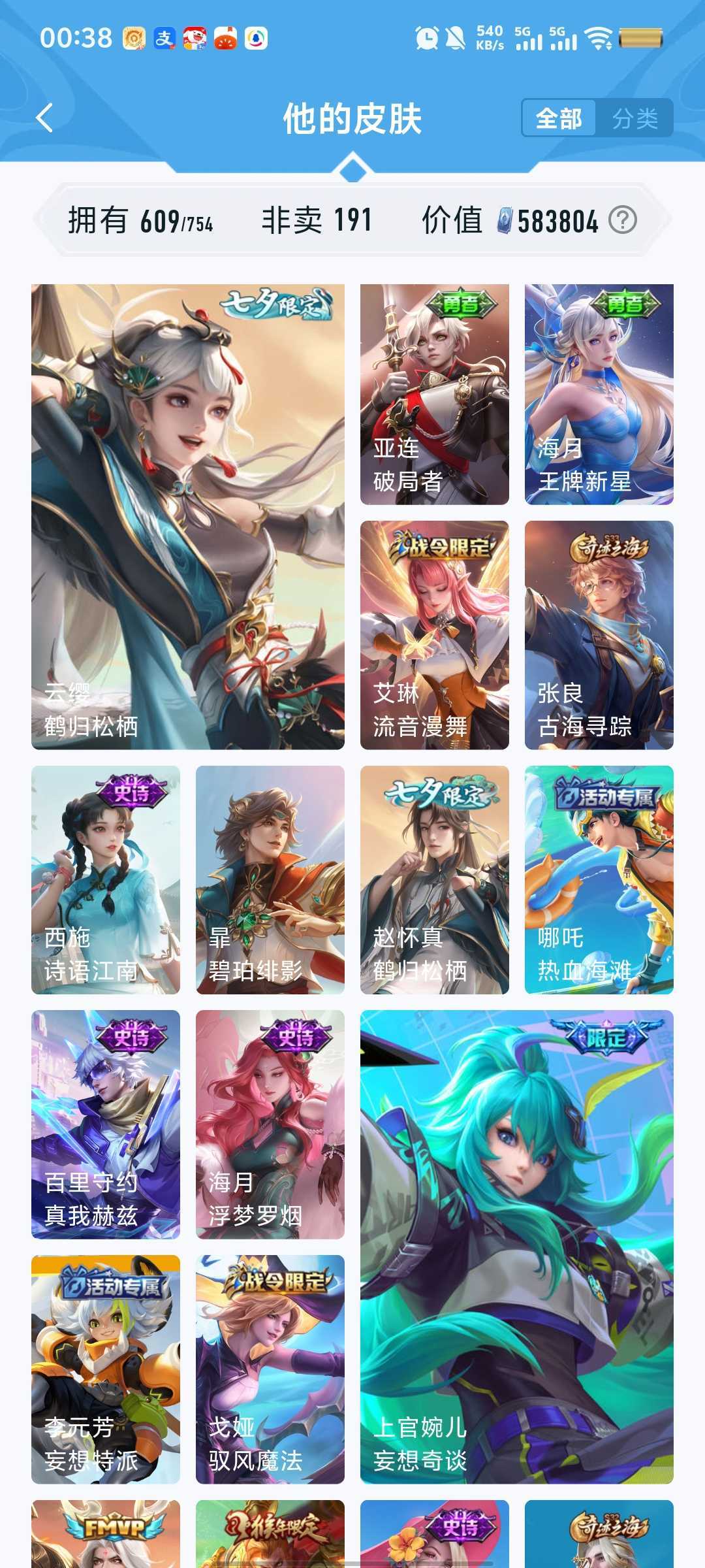 庄周牧神、李白醉月涂山红红、霜北刀、冥王铠、神鉴虞姬、海月芈月、520海诺,群星魔术团云中君婉儿,天蝎神鸟海月白狼亚连、吕布曦玄引、龙年孙尚香大全套,琥珀伽罗,花海澜,七夕,真我守约,妄想婉儿海月,星尊诸葛电玩澜沈梦溪桃园阿离记忆之芯银翎春语,太极少年夏洛特浮生妄,镜玫瑰,干将画中木兰燃星,虞姬项羽,伽罗炽翼,兔年全,齐天,冰霜盘古,吕布怒海,李白诗剑行,墨子降魔,上官狄仁杰神器,不知火舞绯月行,星穹之声,前尘镜枫霜尽橘子,马可深海后羿无尽星芒芈月 大秦宣太后夏侯惇 无限飓风号花木兰 九霄神辉小乔 音你心动孙尚香 机甲周瑜 音你心动狄仁杰 超时空战士达摩 黄金狮子座貂蝉 仲夏夜张良 黄金白羊座,孙悟空 地狱火黄金射手 飞鸢探春蔡文姬花朝如约铠战甲孙策机甲等