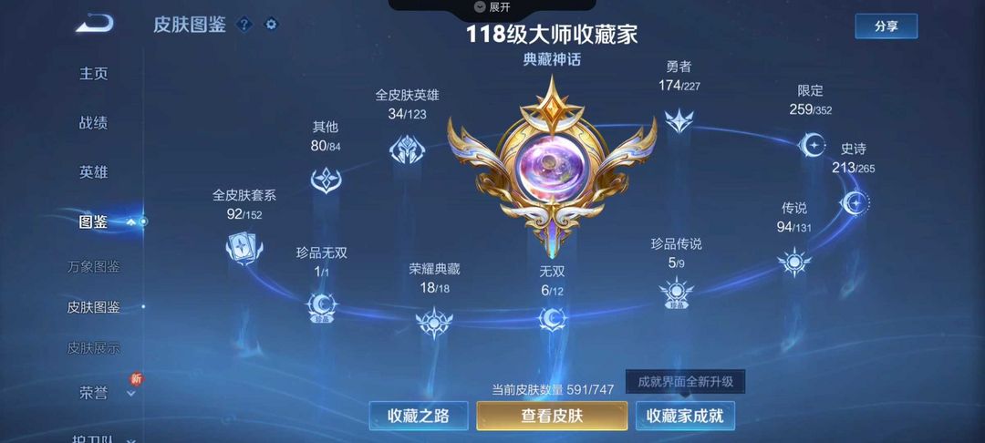 本游戏账号: V10用户,基础段位:最强王者,英雄多,皮肤多。典藏皮肤3个,感受典藏皮肤带来的优质体验快感,FMVP皮肤5个,尽情享受FMVP皮肤带来的主角光环, 私人所属英雄皮肤有:瑶 拾光映像||貂蝉 幻阙歌||小乔 天鹅之梦孙悟空 地狱火||周瑜 音你心动||王昭君 乞巧织情||公孙离 祈雪灵祝||张飞 百相守梦||不知火舞 绯月行||杨玉环 星之鸣奏||艾琳 觅芳踪||后羿 千劫归真||云缨 幻光神枪||女娲 愿照·千秋盛||司空震 愿照·山河定||虞姬 愿照·岁时盈||澜 愿照·九州拓||蔡文姬 愿照·福禄聚||妲己 愿照·众生和||上官婉儿 妄想奇谈||铠 绛天战甲||嬴政 玄雷天君||桑启 鸣野蒿||王昭君 映山客||马可波罗 妄想实况||小乔 音你心动||庄周 牧神诗旅||李信 一念神魔||上官婉儿 神器·万象笔||孙尚香 音你闪耀||宫本武藏 地狱之眼||云中君 群星魔术团||虞姬 启明星使||孙策 乘龙·淬吴钩||瑶 时之祈愿,等等