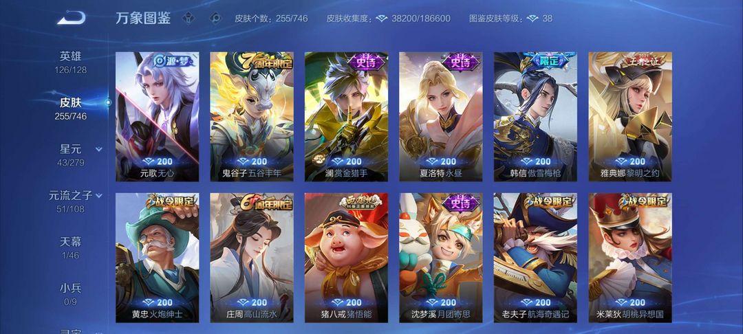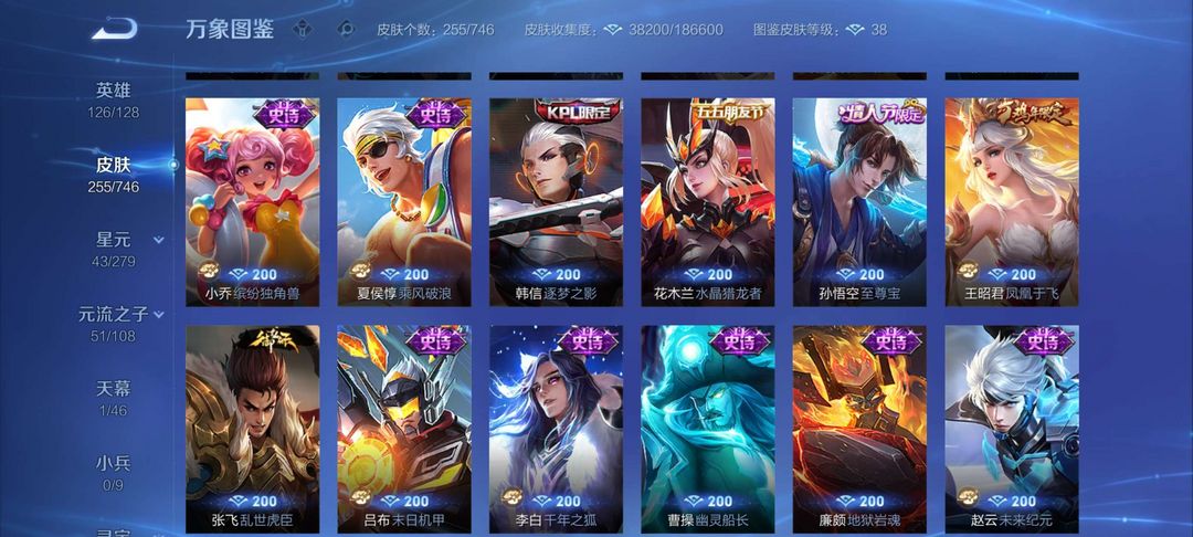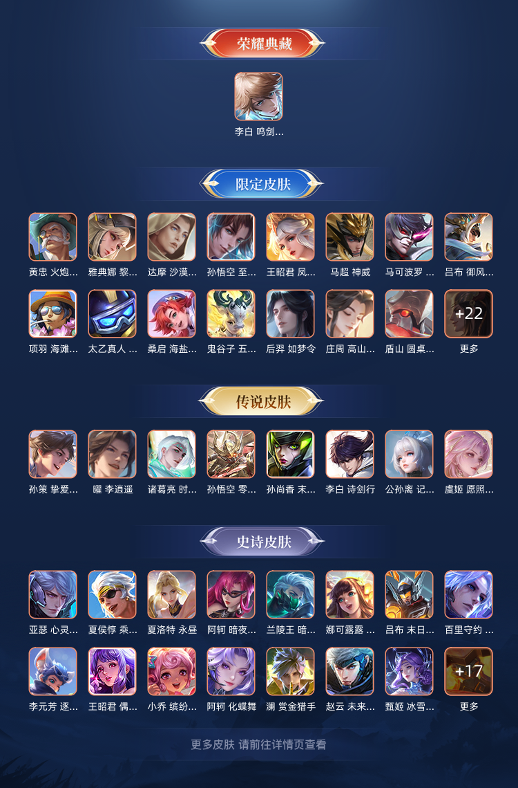 本游戏账号: ,英雄多,皮肤多。 私人所属英雄皮肤有:孙尚香 末日机甲||李白 诗剑行吕布 御风骁将||孙悟空 至尊宝||孙悟空 零号·赤焰||孙策 挚爱之约||王昭君 凤凰于飞||芈月 幻夜卜梦||诸葛亮 时雨天司||达摩 沙漠行僧||雅典娜 黎明之约||马可波罗 暗影游猎||马超 神威||黄忠 火炮绅士,等等