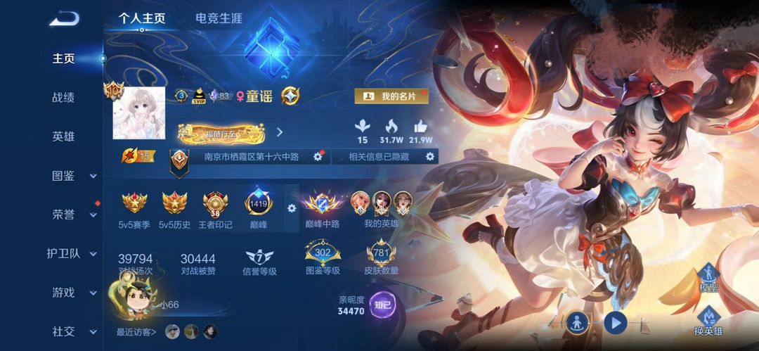 荣耀v10❤783皮纯满皮❤历史巅峰中路历史6国服❤满星满按键满小兵❤安琪拉-颠倒童话❤全马年