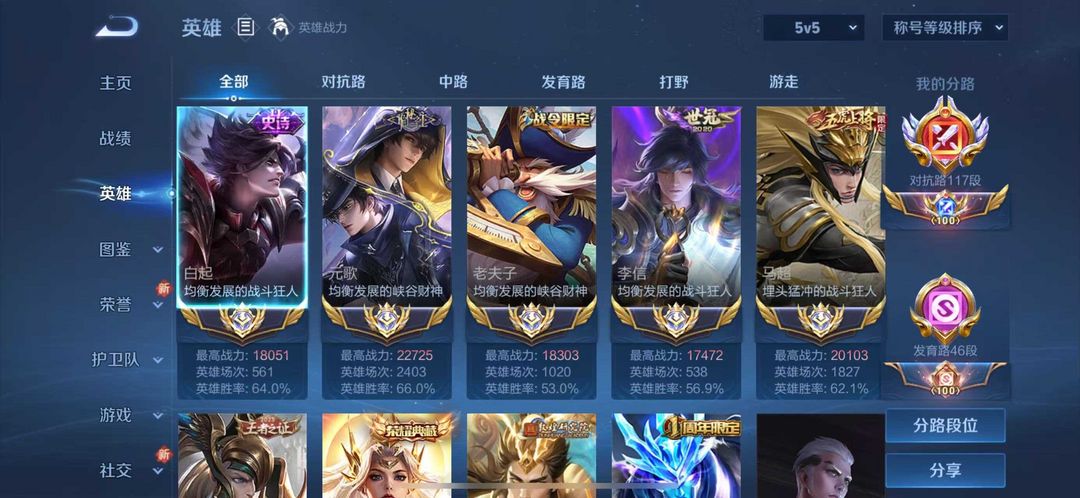 117段对抗✨✨历史8大国服李信木兰蒙恬白起✨2.27战力大国服元歌✨2.2w大国服马超✨多高战力小