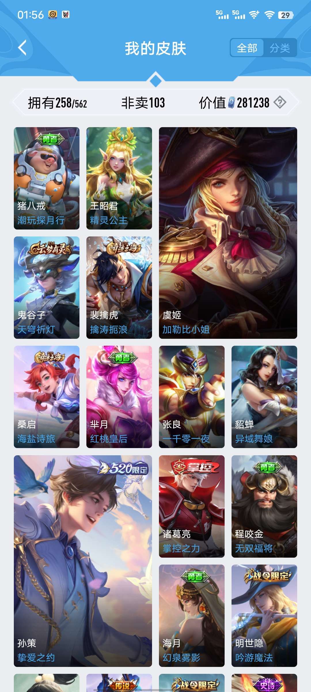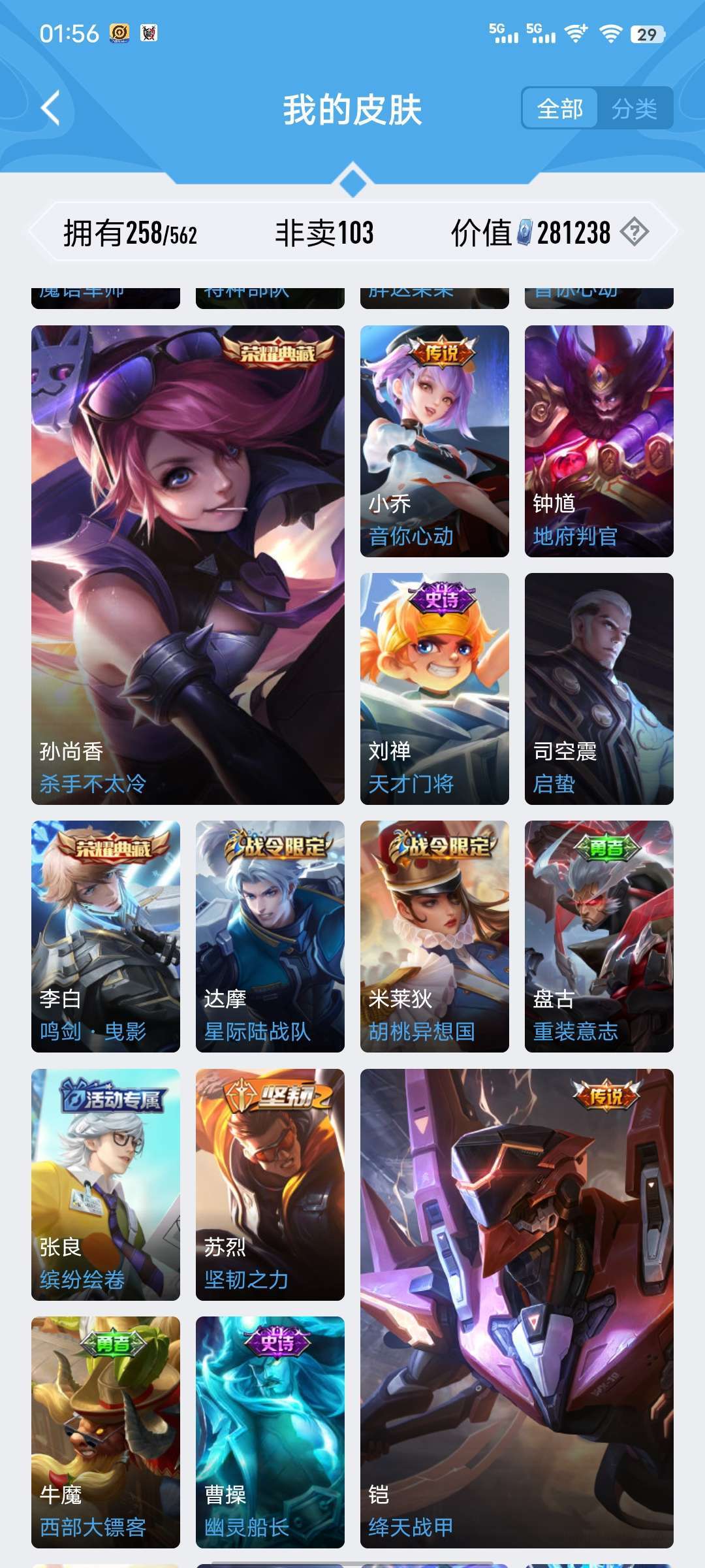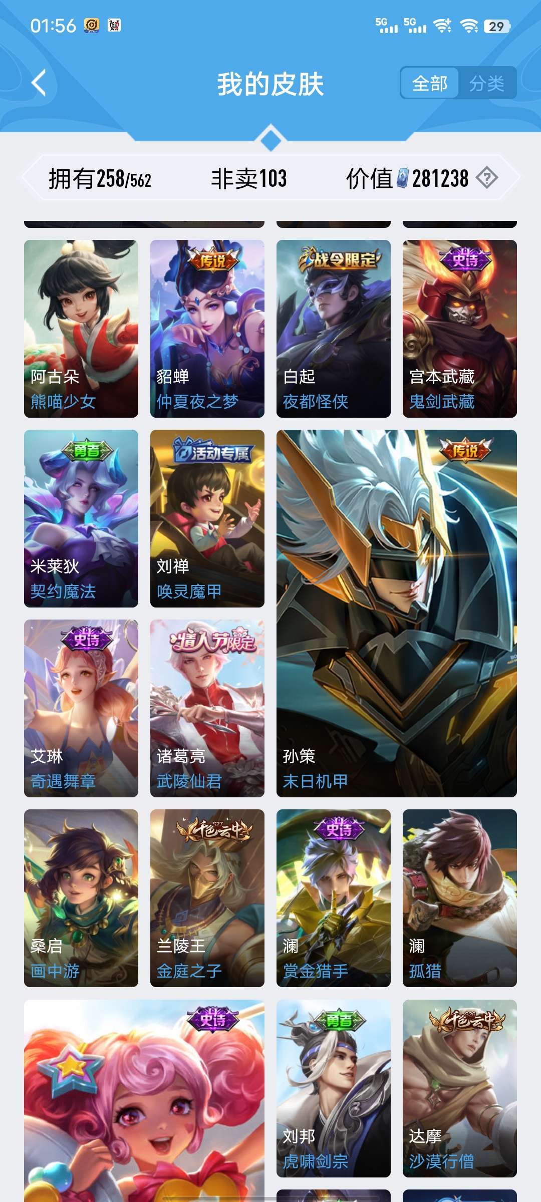 本游戏账号: V9用户,基础段位:英雄多,皮肤多。典藏皮肤4个,感受典藏皮肤带来的优质体验快感,FMVP皮肤5个,尽情享受FMVP皮肤带来的主角光环, 私人所属英雄皮肤有:李白 鸣剑·曳影||孙尚香 杀手不太冷||武则天 倪克斯神谕||夏侯惇 无限飓风号貂蝉 仲夏夜之梦||孙策 挚爱之约||孙策 末日机甲||诸葛亮 武陵仙君||梦奇 胖达荣荣||小乔 音你心动||周瑜 音你心动||铠 绛天战甲||吕布 天魔缭乱||杨戬 永曜之星||李白 凤求凰||关羽 武圣||虞姬 启明星使||达摩 黄金狮子座||虞姬 云霓雀翎||武则天 海洋之心||孙悟空 地狱火||伽罗 太华||孙尚香 末日机甲||狄仁杰 超时空战士||张良 黄金白羊座||李信 一念神魔||宫本武藏 地狱之眼||后羿 黄金射手座,等等