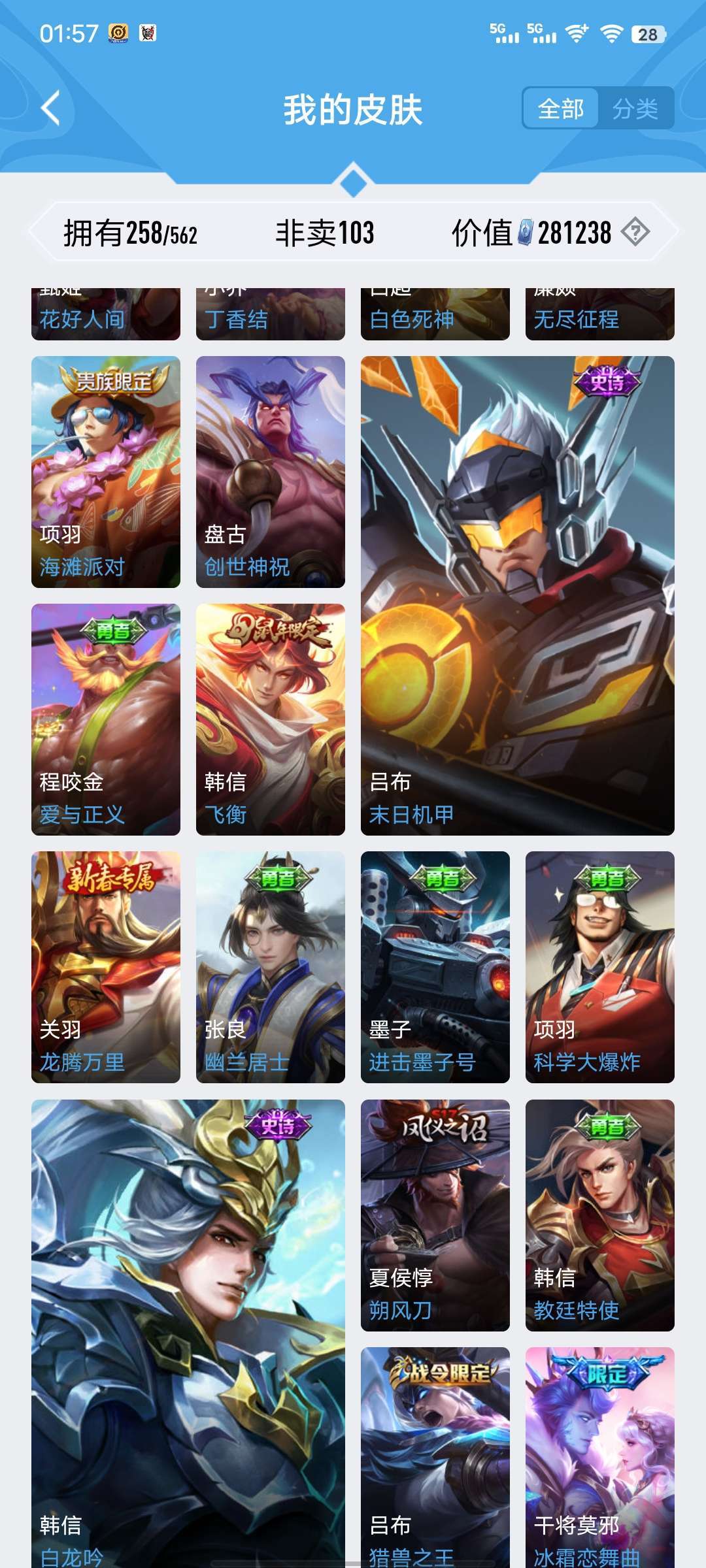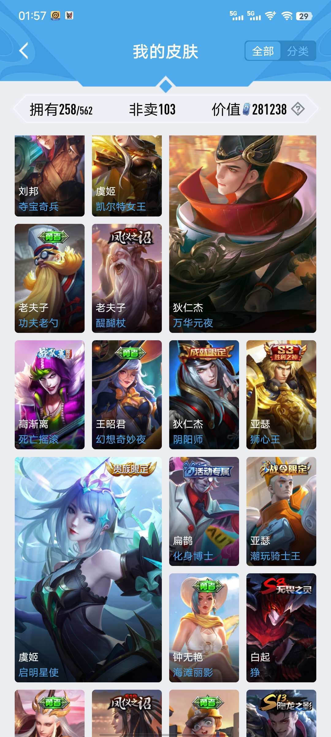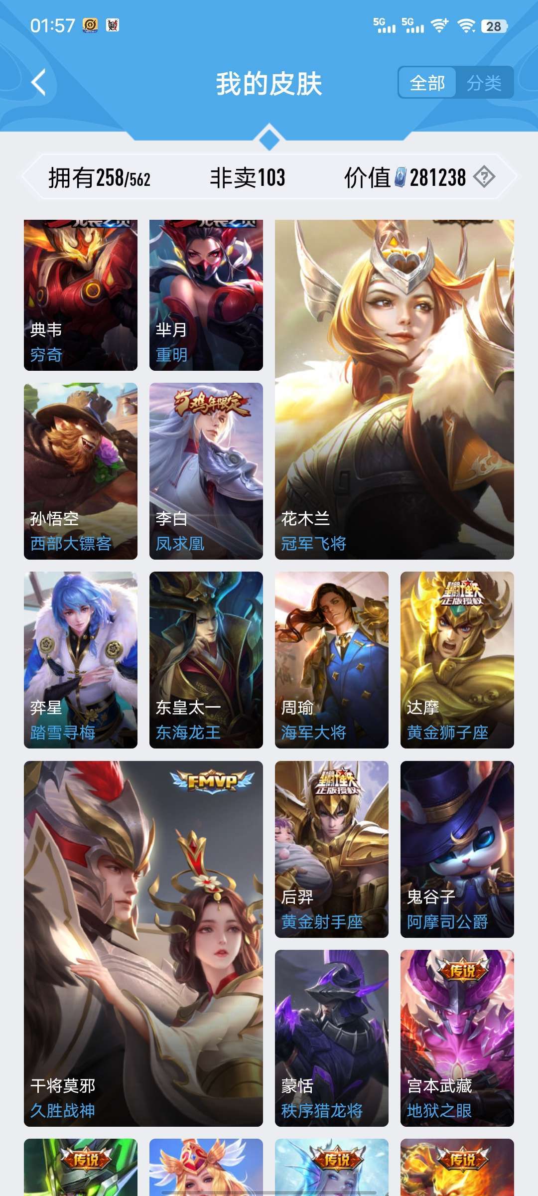 本游戏账号: V9用户,基础段位:英雄多,皮肤多。典藏皮肤4个,感受典藏皮肤带来的优质体验快感,FMVP皮肤5个,尽情享受FMVP皮肤带来的主角光环, 私人所属英雄皮肤有:李白 鸣剑·曳影||孙尚香 杀手不太冷||武则天 倪克斯神谕||夏侯惇 无限飓风号貂蝉 仲夏夜之梦||孙策 挚爱之约||孙策 末日机甲||诸葛亮 武陵仙君||梦奇 胖达荣荣||小乔 音你心动||周瑜 音你心动||铠 绛天战甲||吕布 天魔缭乱||杨戬 永曜之星||李白 凤求凰||关羽 武圣||虞姬 启明星使||达摩 黄金狮子座||虞姬 云霓雀翎||武则天 海洋之心||孙悟空 地狱火||伽罗 太华||孙尚香 末日机甲||狄仁杰 超时空战士||张良 黄金白羊座||李信 一念神魔||宫本武藏 地狱之眼||后羿 黄金射手座,等等