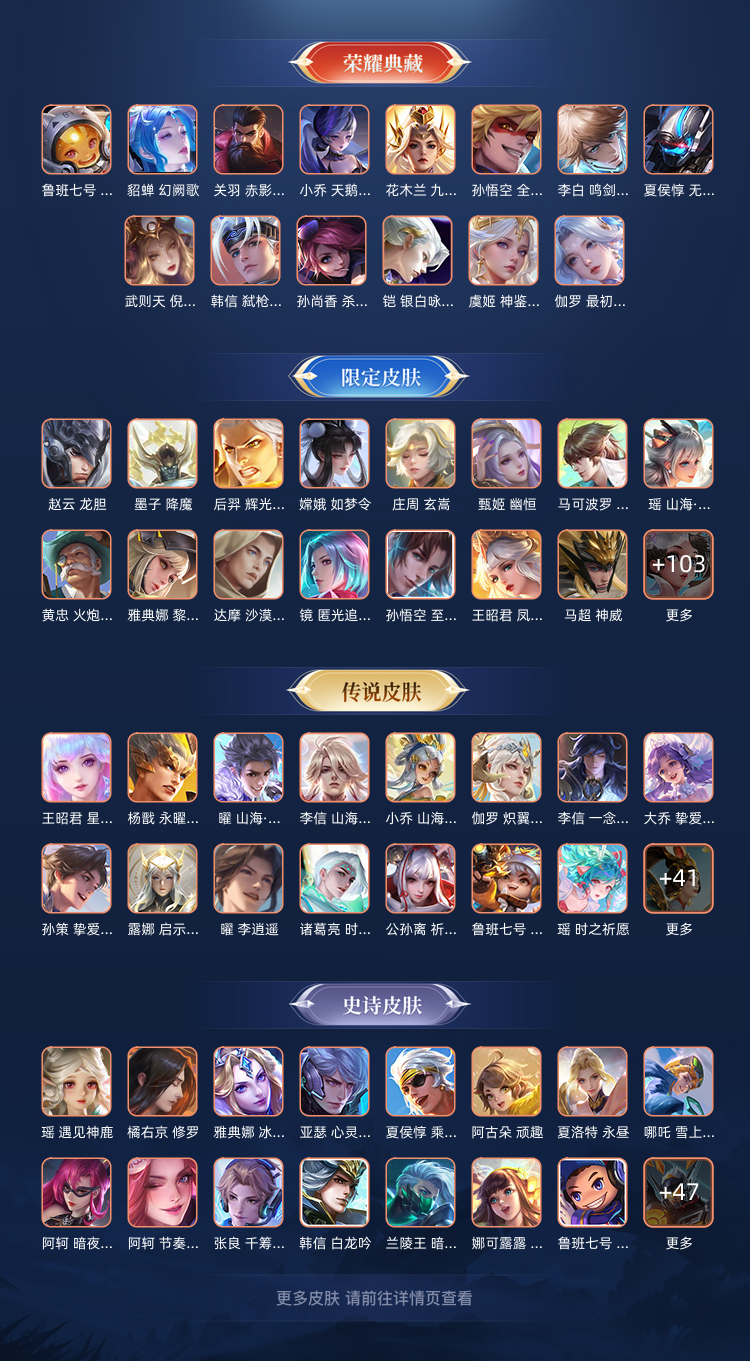 本游戏账号: ,英雄多,皮肤多。典藏皮肤14个,感受典藏皮肤带来的优质体验快感,,尽情享受FMVP皮肤带来的主角光环, 私人所属英雄皮肤有:关羽 赤影疾锋||李白 鸣剑·曳影||孙悟空 全息碎影||韩信 弑枪猎影||花木兰 九霄神辉||貂蝉 幻阙歌||夏侯惇 无限飓风号||鲁班七号 星空梦想||小乔 天鹅之梦||铠 银白咏叹调,等等