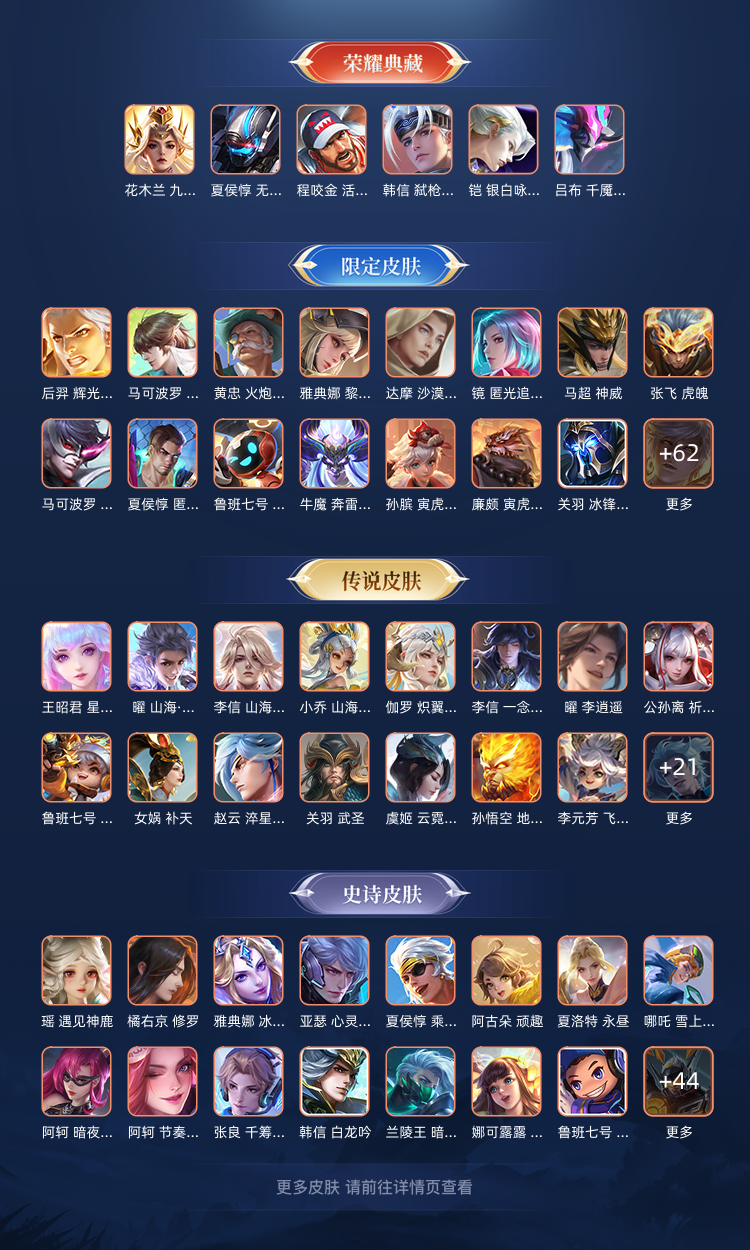606皮肤 6荣耀典藏 9珍品传说 98传说