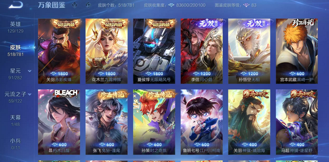推荐包天不禁言苹果✨李信无双问心剑无相马年关羽马超✨死神全套兔狲蓬尾典藏九霄神辉赤影疾锋蛇年澜虞姬