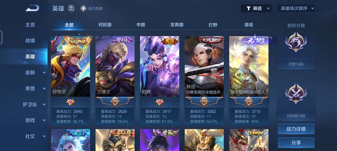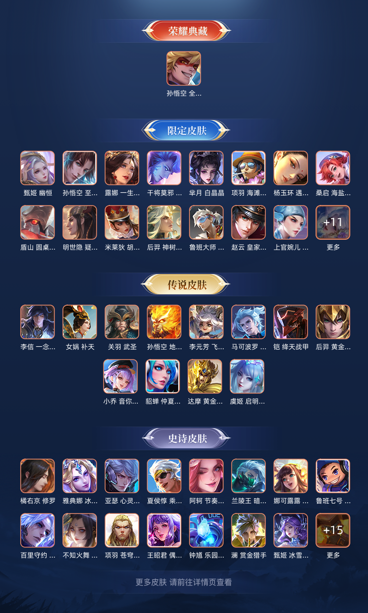 本游戏账号: ,英雄多,皮肤多。典藏皮肤1个,感受典藏皮肤带来的优质体验快感,FMVP皮肤4个,尽情享受FMVP皮肤带来的主角光环, 私人所属英雄皮肤有:孙悟空 全息碎影李信 一念神魔||孙尚香 乘龙·问璇玑||关羽 武圣||孙悟空 地狱火||李元芳 飞鸢探春||后羿 黄金射手座||王昭君 乞巧织情||虞姬 启明星使||貂蝉 仲夏夜之梦||赵云 乘龙·铭钟鼎||女娲 补天||小乔 音你心动||铠 绛天战甲||吕布 遇见神鼓||马可波罗 深海之息,等等