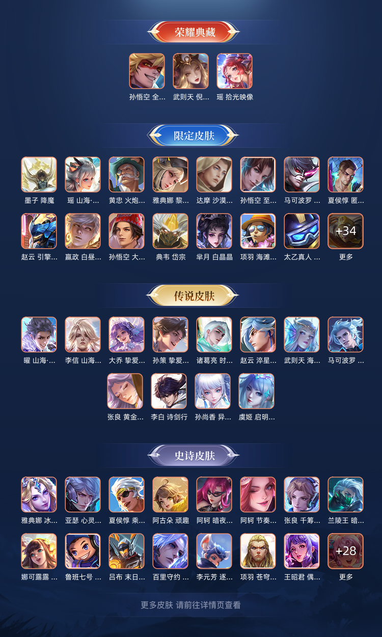 本游戏账号: ,英雄多,皮肤多。典藏皮肤3个,感受典藏皮肤带来的优质体验快感,FMVP皮肤1个,尽情享受FMVP皮肤带来的主角光环, 私人所属英雄皮肤有:孙悟空 全息碎影||武则天 倪克斯神谕||瑶 拾光映像百里守约 碎云||李信 山海·炽霜斩||孙尚香 异界灵契||李白 诗剑行||诸葛亮 时雨天司||孙悟空 齐天大圣||大乔 挚爱花嫁||虞姬 启明星使||武则天 海洋之心||貂蝉 曦玄引||张良 黄金白羊座||孙策 挚爱之约||赵云 淬星耀世||曜 山海·苍雷引||亚瑟 追逃游戏||马可波罗 深海之息,等等