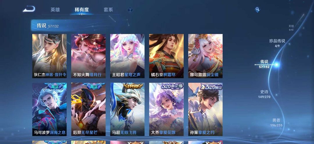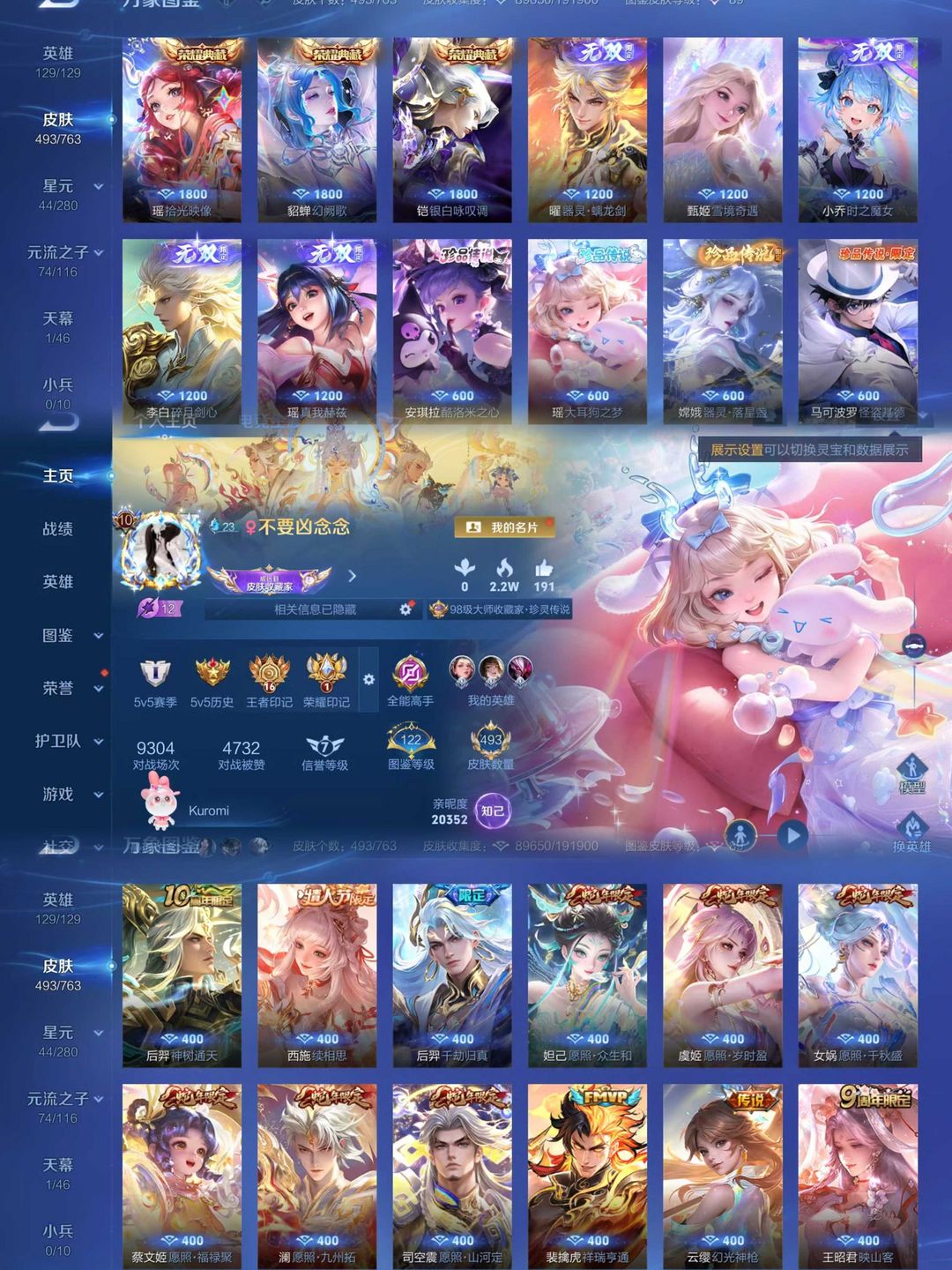 本游戏账号: V9用户,基础段位:永恒钻石II,英雄多,皮肤多。典藏皮肤2个,感受典藏皮肤带来的优质体验快感,FMVP皮肤2个,尽情享受FMVP皮肤带来的主角光环, 私人所属英雄皮肤有:虞姬 神鉴启示录||李白 鸣剑·曳影宫本武藏 惊梅引||露娜 霜月吟||狄仁杰 神器·狴犴令||公孙离 记忆之芯||孙尚香 乘龙·问璇玑||公孙离 祈雪灵祝||虞姬 启明星使||诸葛亮 时雨天司||吕布 天魔缭乱||伽罗 太华||杨戬 永曜之星||李白 凤求凰,等等