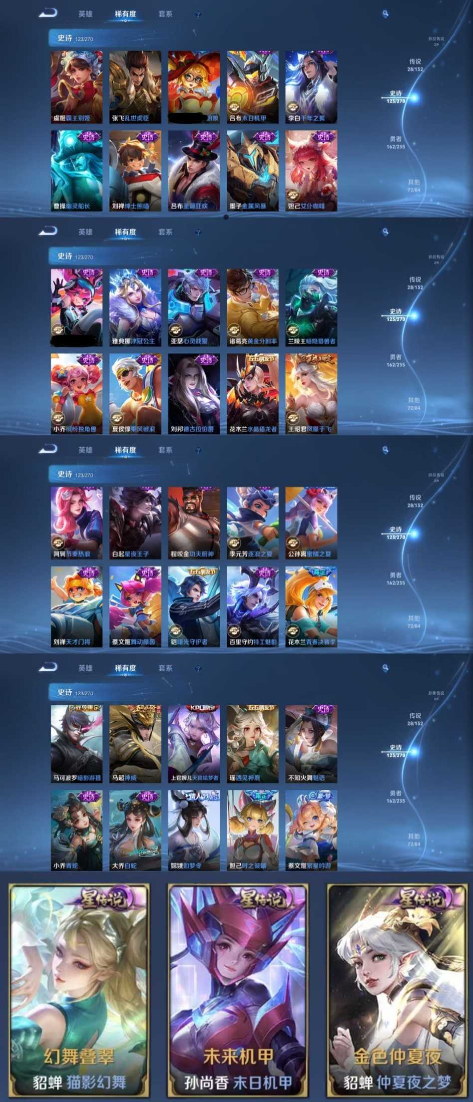 时间到了还登录白玩或者顶号全部改密拉黑处理永不解除,顶号机器会秒禁玩改密,顶号不仅拉黑还没得玩,赚三两块不容易,请理解谢谢。 ❤❤❤❤❤❤❤❤❤❤❤❤❤❤❤❤❤❤❤ 请勿开挂,挂机,送头,骂人,撤单后游戏等如有违规永久拉黑永不解除。 重置二级密码不要费劲了,号主每天都会上号查看,多行不义必自毙,人在做天在看,多做好事多自律,少做缺德事。 该号英雄129个皮肤390个,典藏1个,无双2个,珍品传说2个,星传说3个,传说28个,史诗123个,祝您游戏愉快~