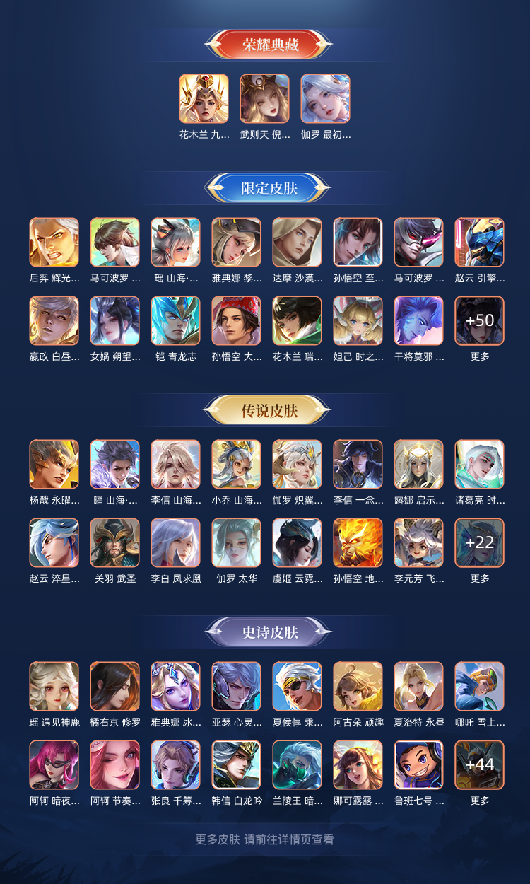 v10,伽罗新典藏。蛇限全秒。传说,史诗皮肤多。新出皮肤都差不多买了