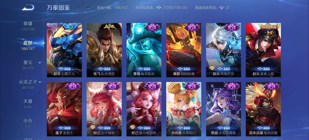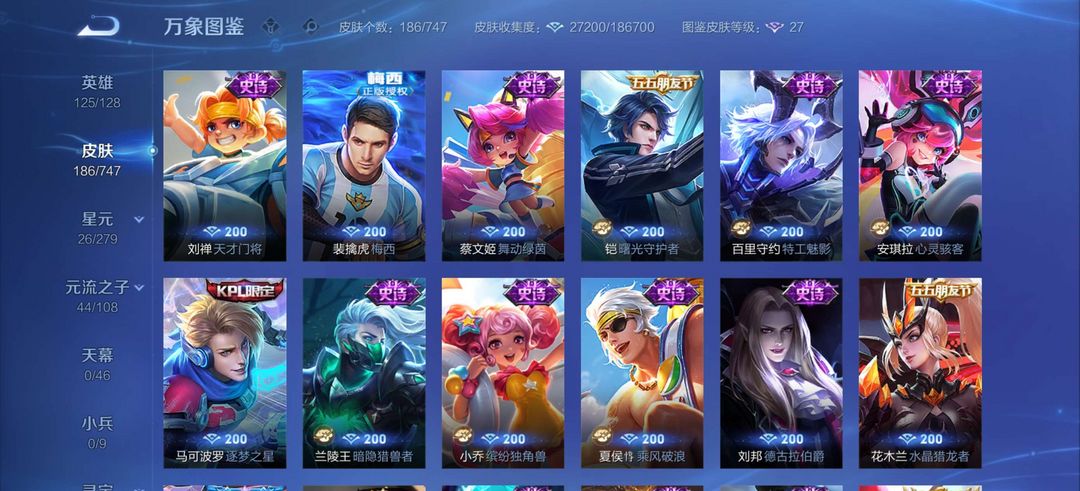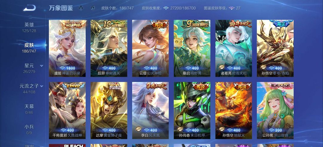 本游戏账号: ,英雄多,皮肤多。FMVP皮肤1个,尽情享受FMVP皮肤带来的主角光环, 私人所属英雄皮肤有:孙尚香 末日机甲||李白 凤求凰||诸葛亮 时雨天司||孙悟空 零号·赤焰||孙悟空 地狱火||桑启 鸣野蒿干将莫邪 久胜战神亚瑟 潮玩骑士王||马可波罗 逐梦之星||鲁班大师 乓乓大师||杨玉环 遇见飞天||阿轲 迷踪丽影||孙悟空 大圣娶亲||李元芳 妄想特派||安琪拉 如懿||桑启 海盐诗旅||明世隐 疑决卦||韩信 飞衡||狄仁杰 魔术师||狄仁杰 阴阳师||刘邦 夺宝奇兵||米莱狄 御霄||元歌 云间偶戏||项羽 海滩派对||蔡文姬 繁星吟游||赵云 引擎之心||赵云 皇家上将||鲁班七号 狮舞东方||女娲 朔望之晖||裴擒虎 梅西||裴擒虎 李小龙||盾山 圆桌骑士||马超 神威||铠 青龙志||钟馗 神迹守卫,等等
