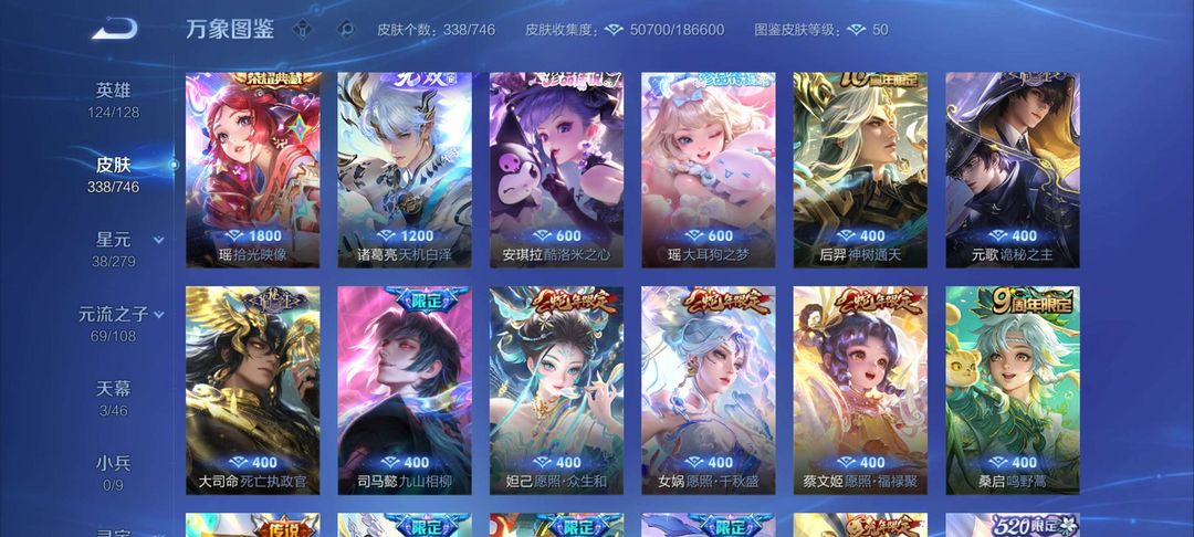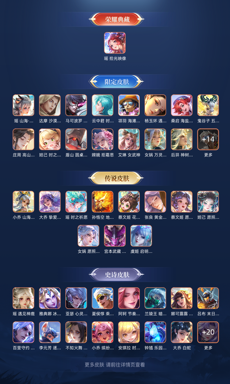 本游戏账号: ,英雄多,皮肤多。典藏皮肤1个,感受典藏皮肤带来的优质体验快感, 私人所属英雄皮肤有:瑶 拾光映像孙悟空 地狱火||桑启 鸣野蒿||大乔 挚爱花嫁||大乔 时之奇旅||瑶 时之祈愿||鲁班七号 时之奇旅||蔡文姬 花朝如约||小乔 山海·琳琅生||孙膑 小动物乐团,等等