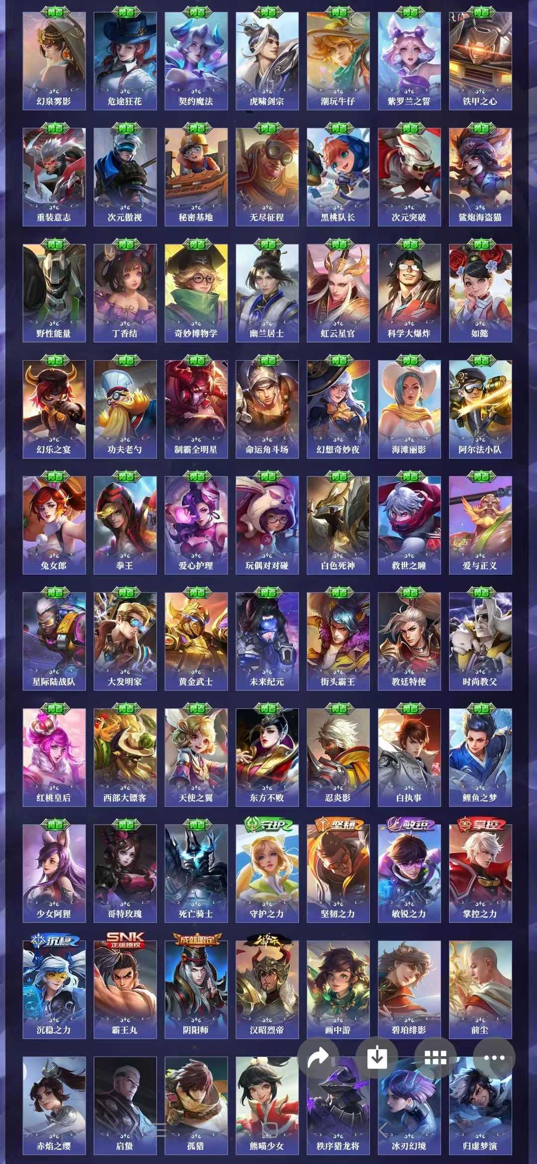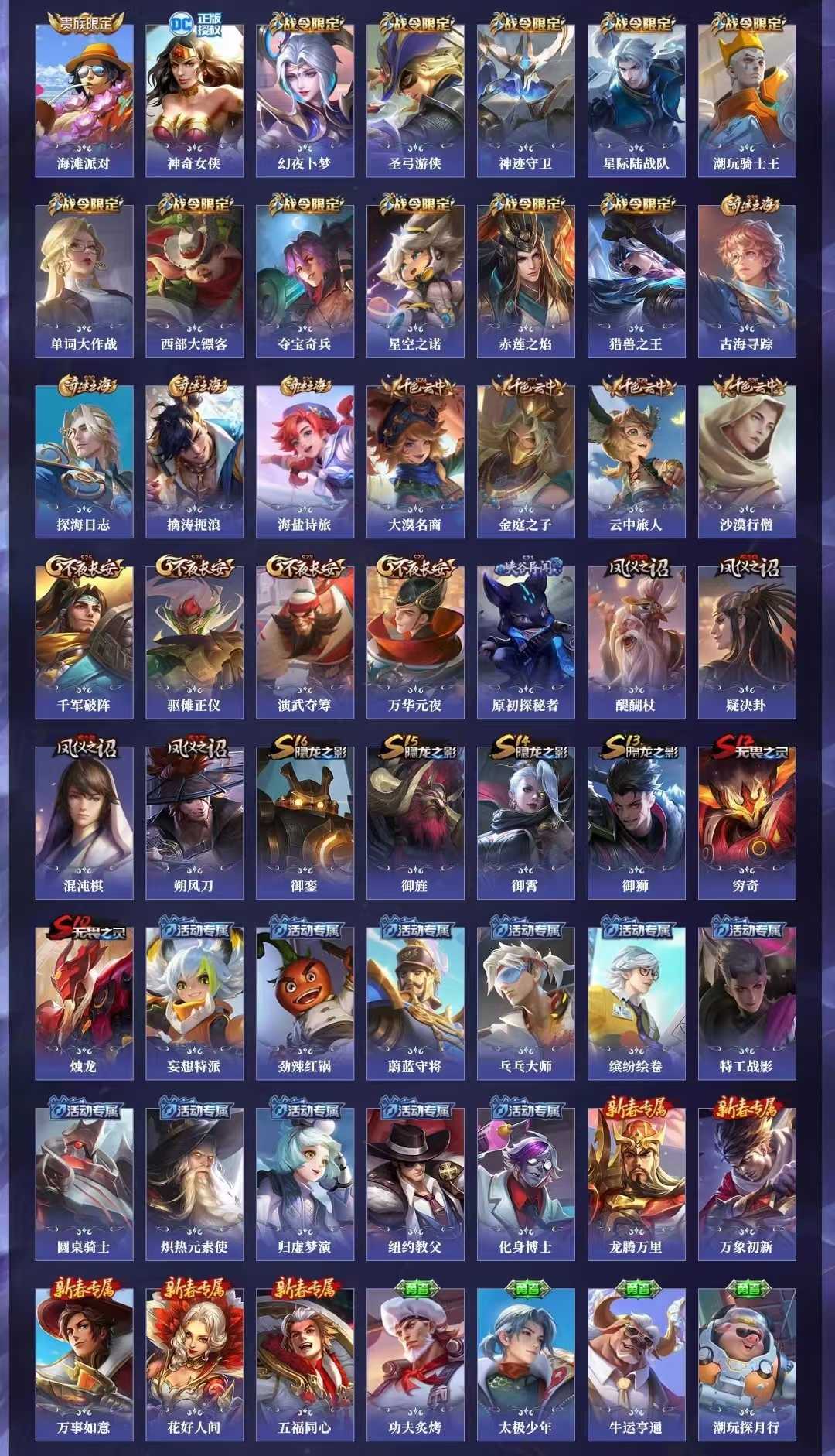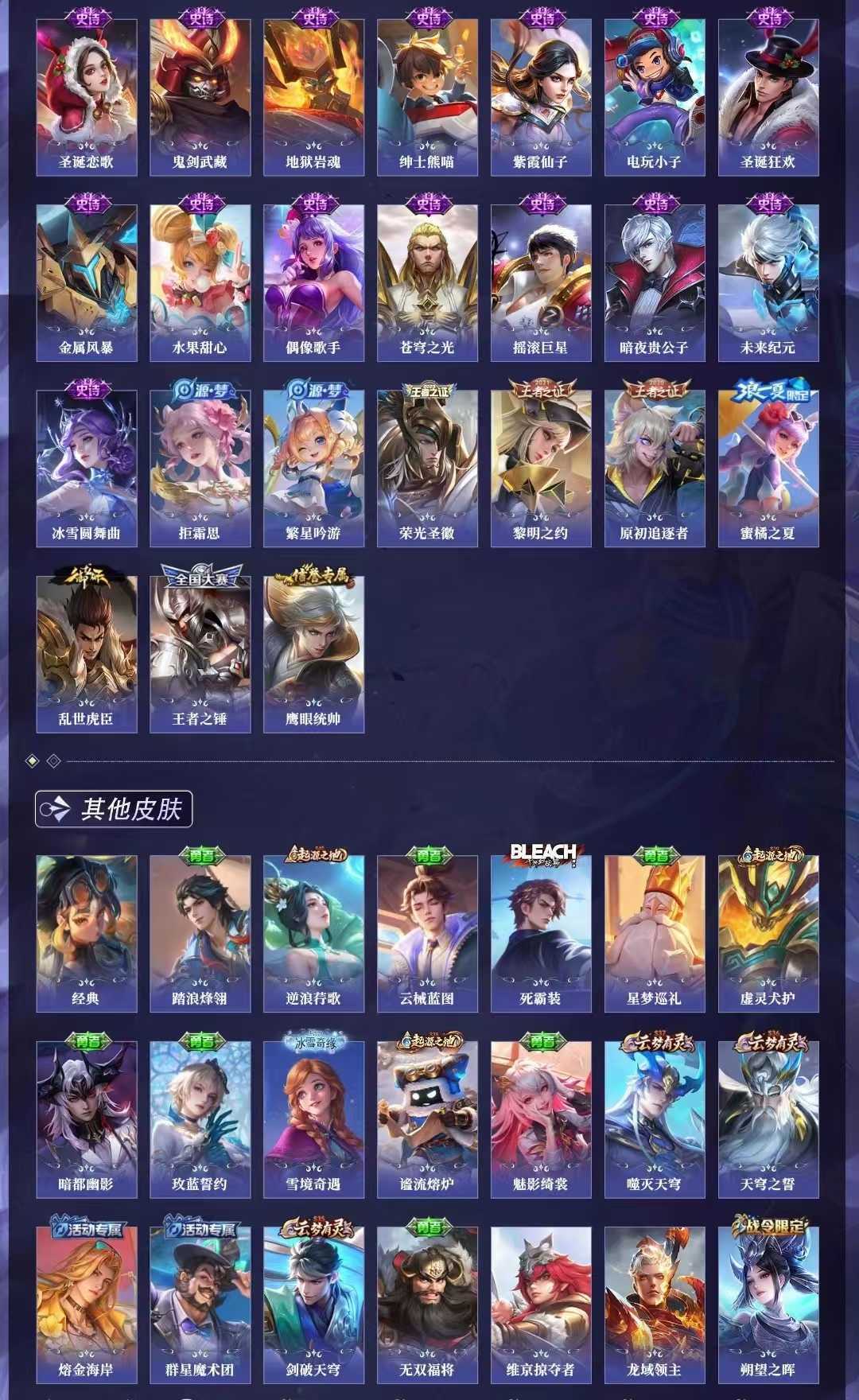 【C62】贵族V10~401皮肤41传说情瑶7水晶3星元全息碎影,炽霜斩,鸣剑曳影,无限飓风号,星空梦想,天鹅之梦,杀手不太冷【全牛年,全五虎上将,全五岳,全五兽】