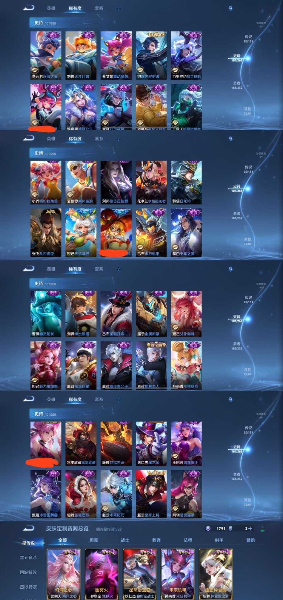 时间到了还登录白玩或者顶号全部改密拉黑处理永不解除,顶号机器会秒禁玩改密,顶号不仅拉黑还没得玩,赚三两块不容易,请理解谢谢。 ❤❤❤❤❤❤❤❤❤❤❤❤❤❤❤❤❤❤❤ 请勿开挂,挂机,送头,骂人,撤单后游戏等如有违规永久拉黑永不解除。 重置二级密码不要费劲了,号主每天都会上号查看,多行不义必自毙,人在做天在看,多做好事多自律,少做缺德事。 该号英雄129个皮肤378个,典藏3个,星传说5个,传说20个,史诗101个,祝您游戏愉快~